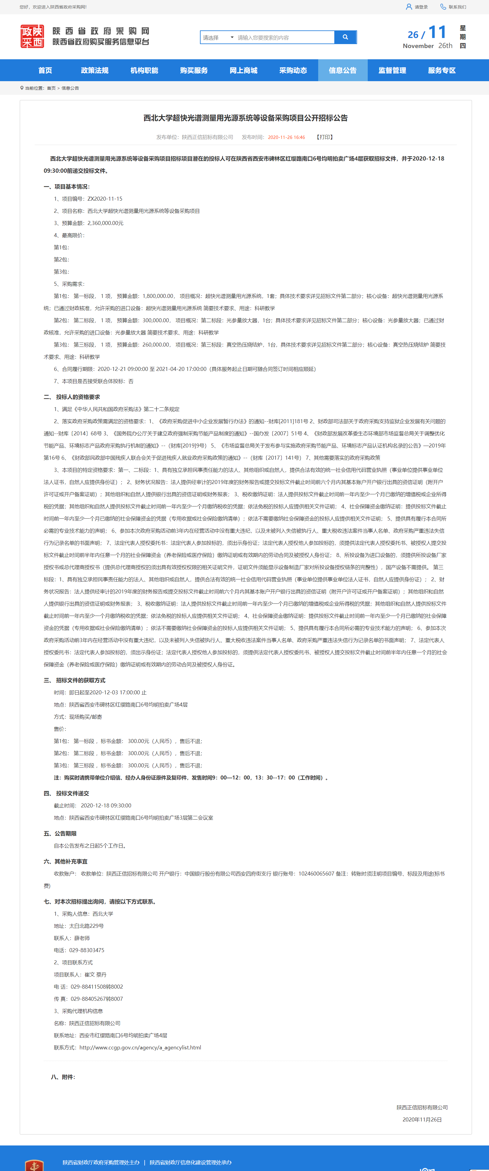 乐投平台超快光谱测量用光源系统等设备采购项目公开招标公告 作者: 编辑:薛利娟 时间:2020-11-26 原公告链接:http://www.ccgp-shaanxi.gov.cn/notice/noticeDetail.do?noticeguid=8a85be3375d5d589017603aaa6b51977