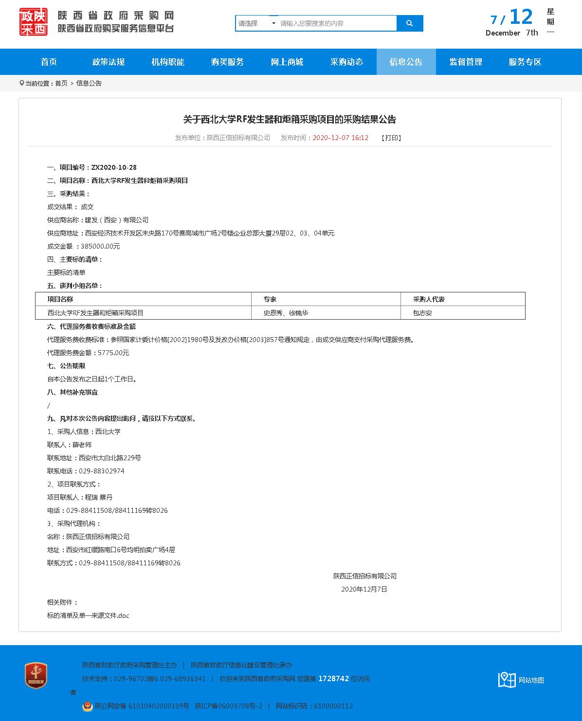乐投平台RF发生器和炬箱采购项目的采购结果公告