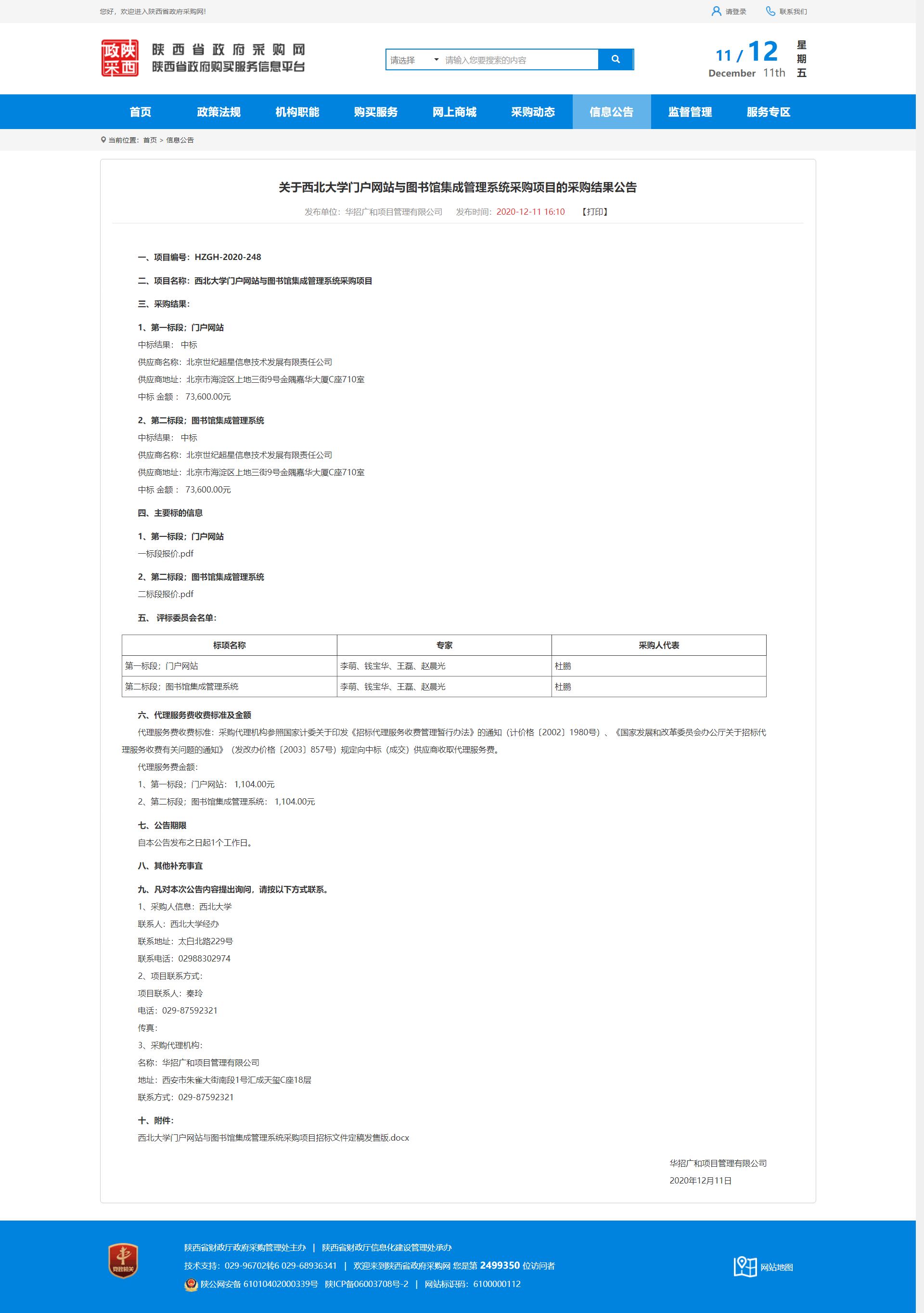 关于乐投平台门户网站与图书馆集成管理系统采购项目的采购结果公告 作者: 编辑:薛利娟 时间:2020-12-11 原公告地址:http://www.ccgp-shaanxi.gov.cn/notice/noticeDetail.do?noticeguid=8a85be3275d5d5c2017650d7c2df14aa