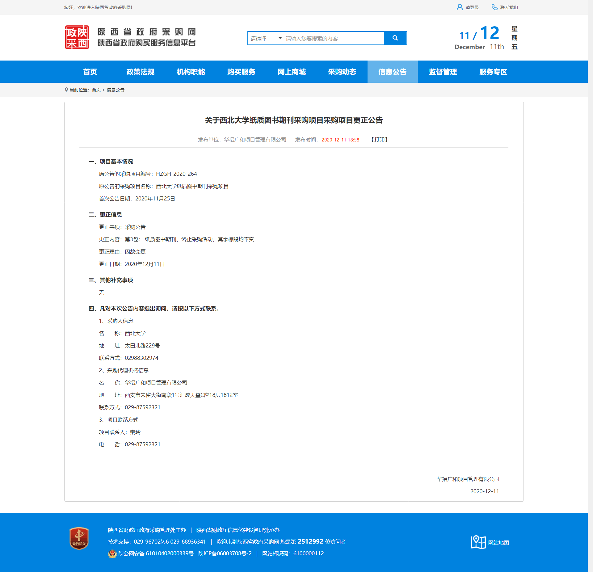 关于乐投平台纸质图书期刊采购项目采购项目更正公告 作者: 编辑:薛利娟 时间:2020-12-11 原公告地址:http://www.ccgp-shaanxi.gov.cn/notice/noticeDetail.do?noticeguid=8a85be3475d5d52d017641b1340e7790