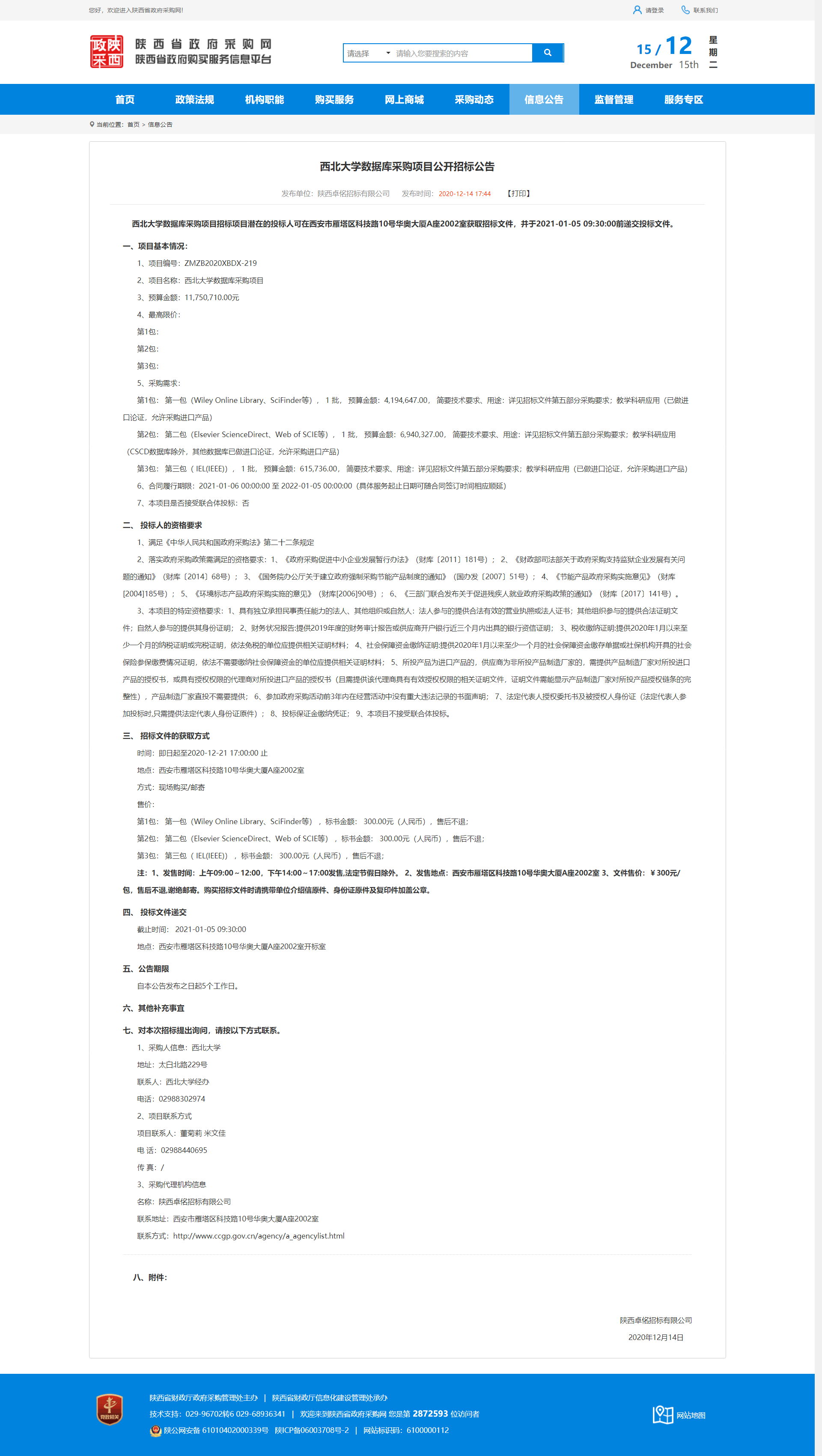 乐投平台数据库采购项目公开招标公告 作者: 编辑:薛利娟 时间:2020-12-15 原公告地址:http://www.ccgp-shaanxi.gov.cn/notice/noticeDetail.do?noticeguid=8a85be32765f9c9b0176607804921682