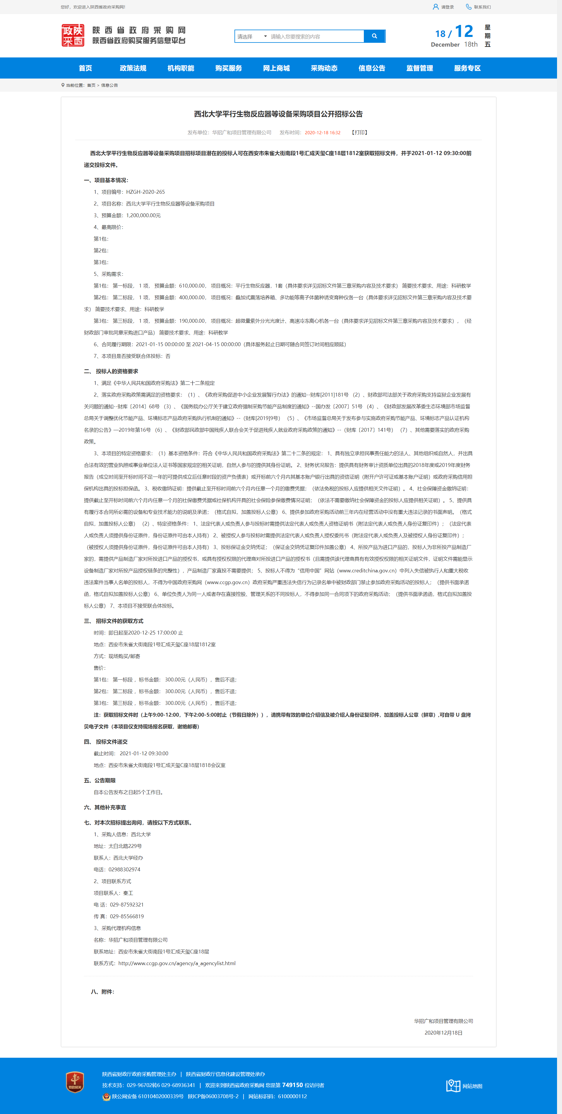 乐投平台平行生物反应器等设备采购项目公开招标公告 作者: 编辑:薛利娟 时间:2020-12-18 原公告地址:http://www.ccgp-shaanxi.gov.cn/notice/noticeDetail.do?noticeguid=8a85be32765f9c9b017674d0094477c2