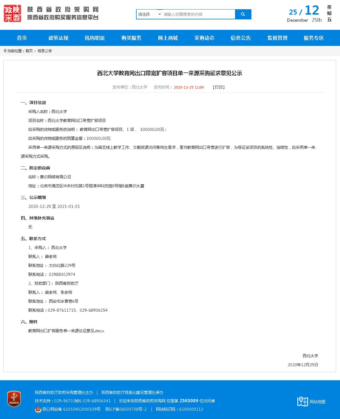 乐投平台教育网出口带宽扩容项目单一来源采购征求意见公示