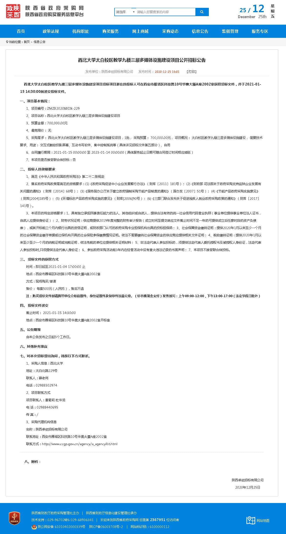 乐投平台太白校区教学九楼三层多媒体设施建设项目公开招标公告