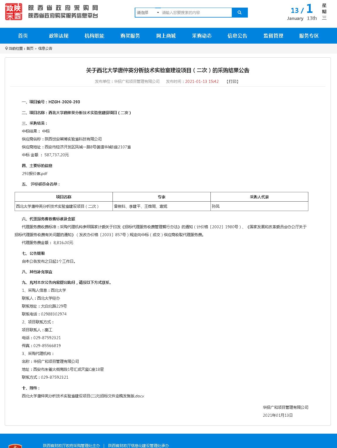 关于乐投平台唐仲英分析技术实验室建设项目(二次)的采购结果公告