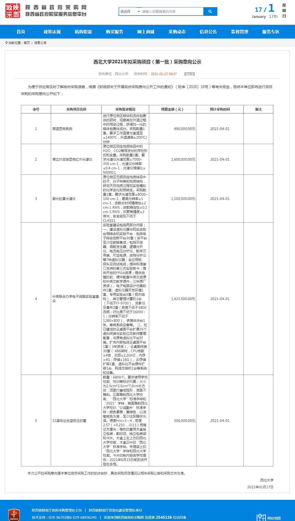 乐投平台2021年拟采购项目(第一批)采购意向公示