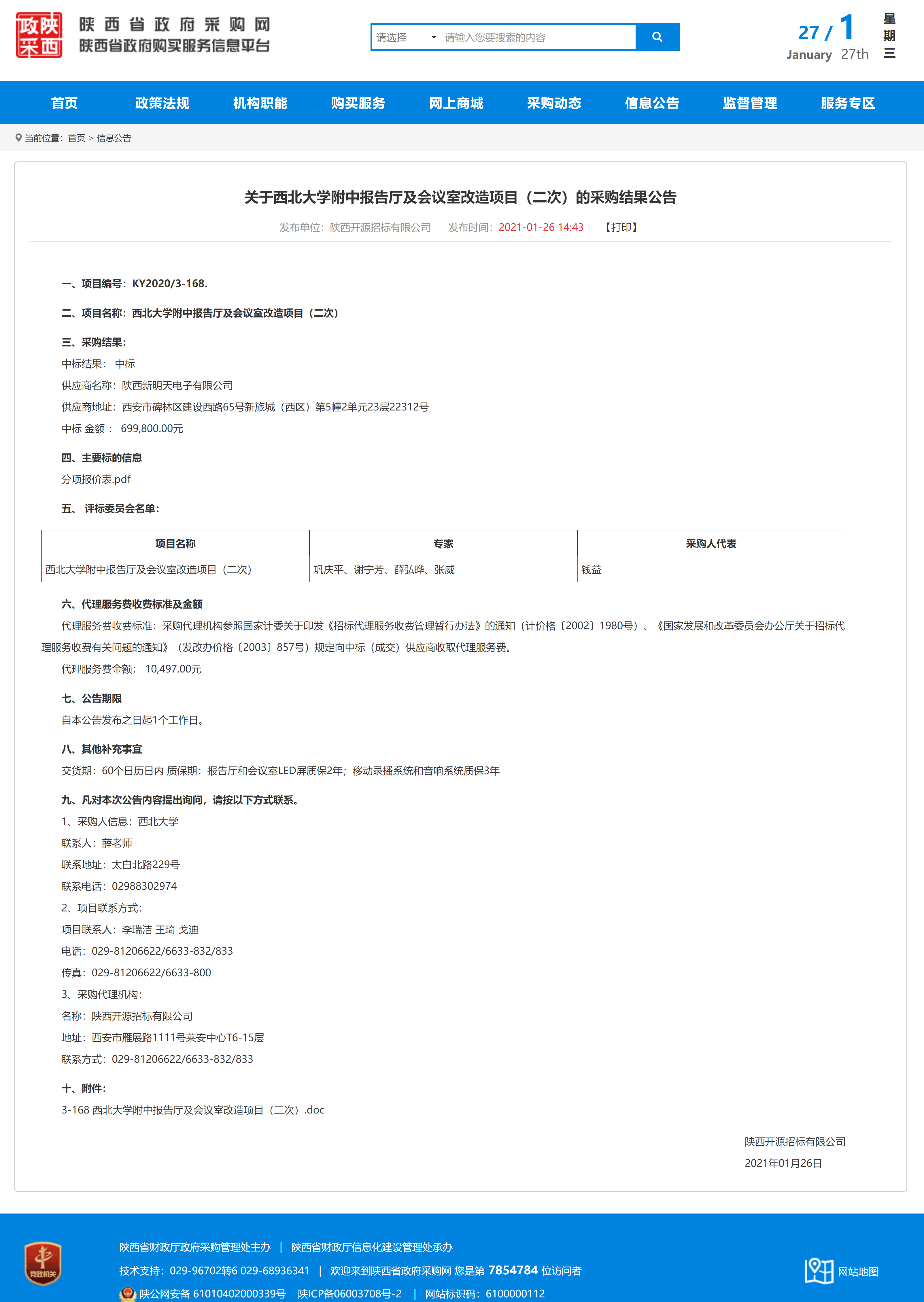 乐投平台附中报告厅及会议室改造项目(二次)的采购结果公告