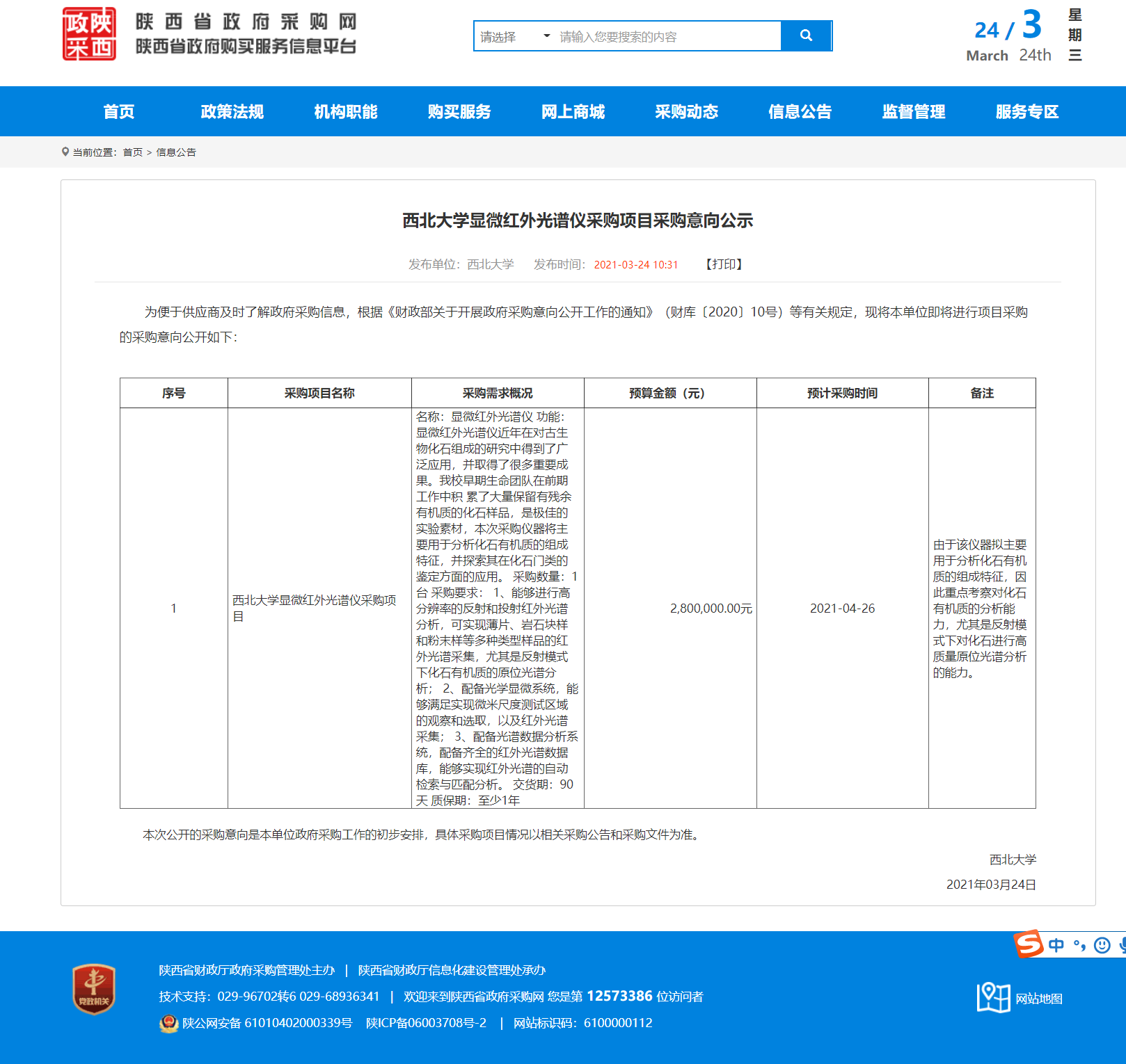 乐投平台显微红外光谱仪采购项目采购意向公示