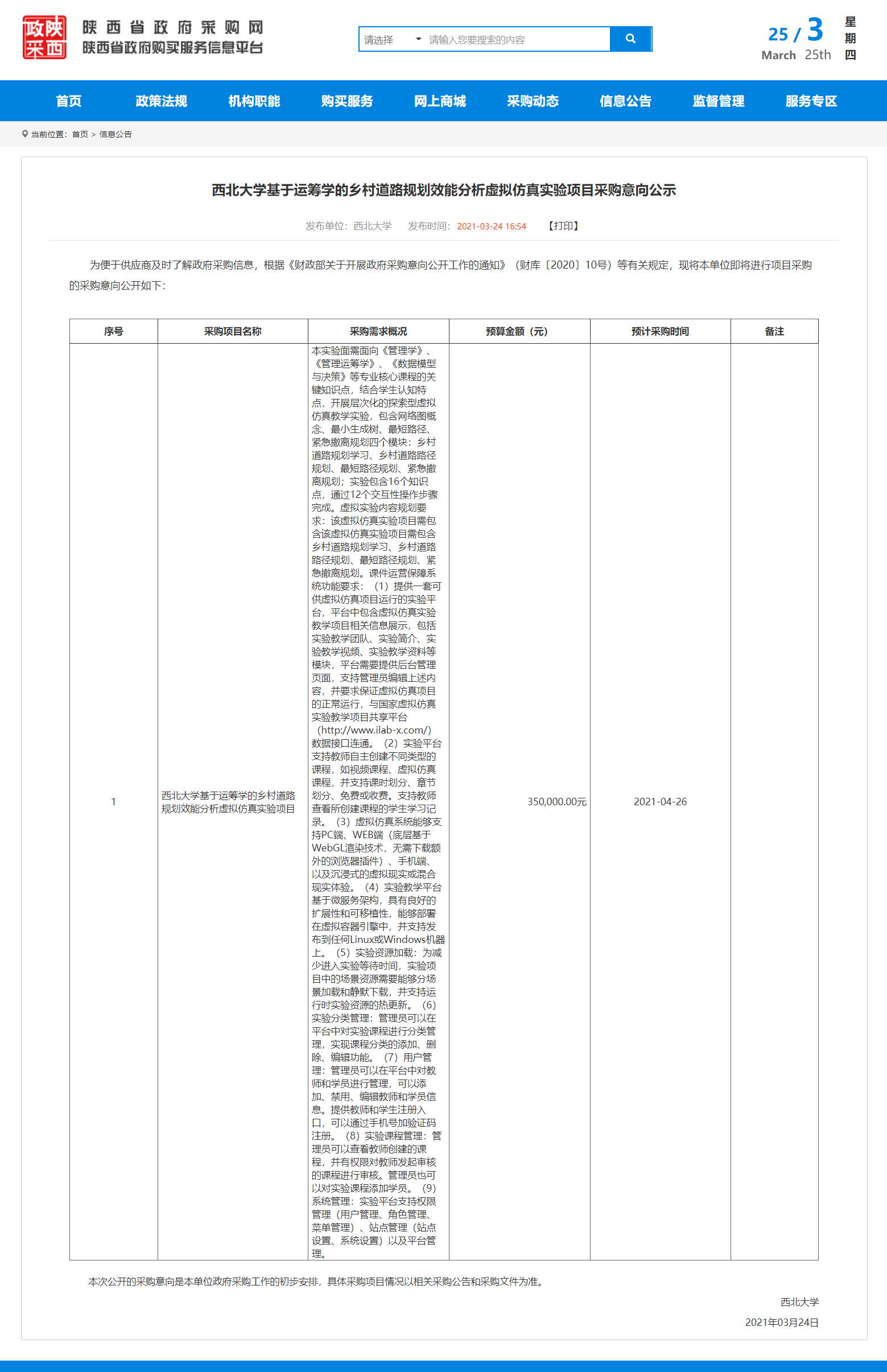 乐投平台基于运筹学的乡村道路规划效能分析虚拟仿真实验项目采购意向公示