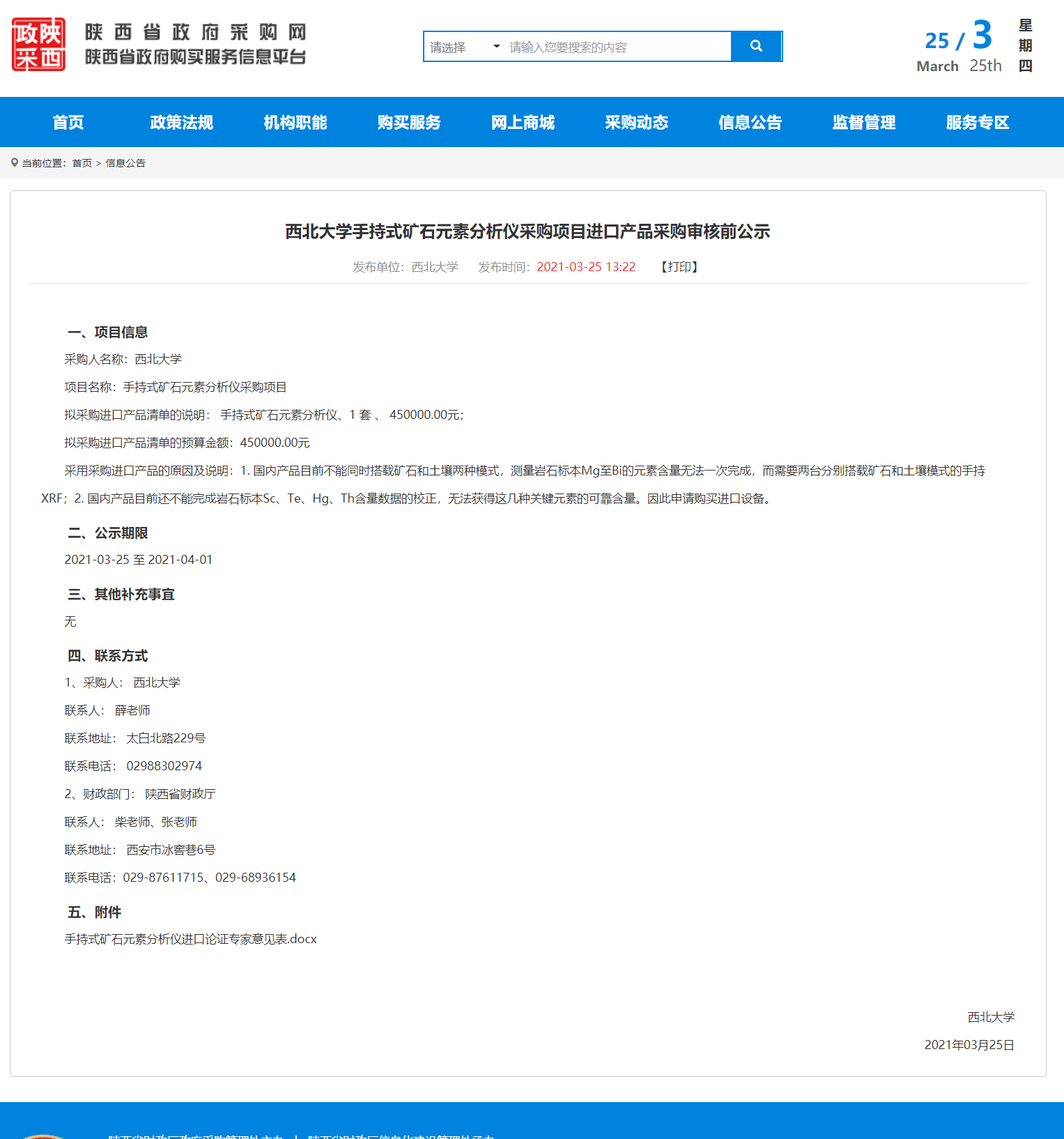 乐投平台手持式矿石元素分析仪采购项目进口产品采购审核前公示