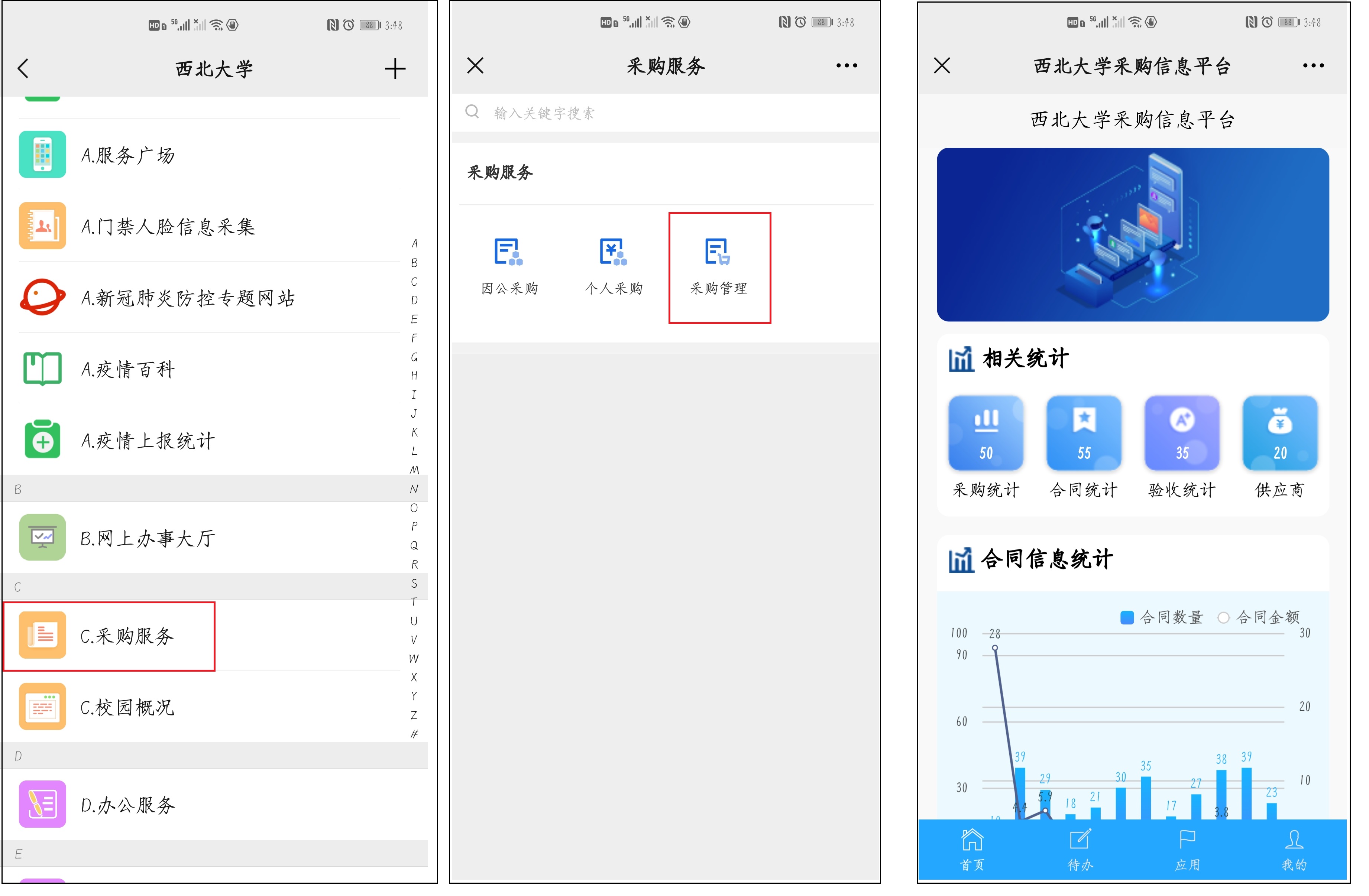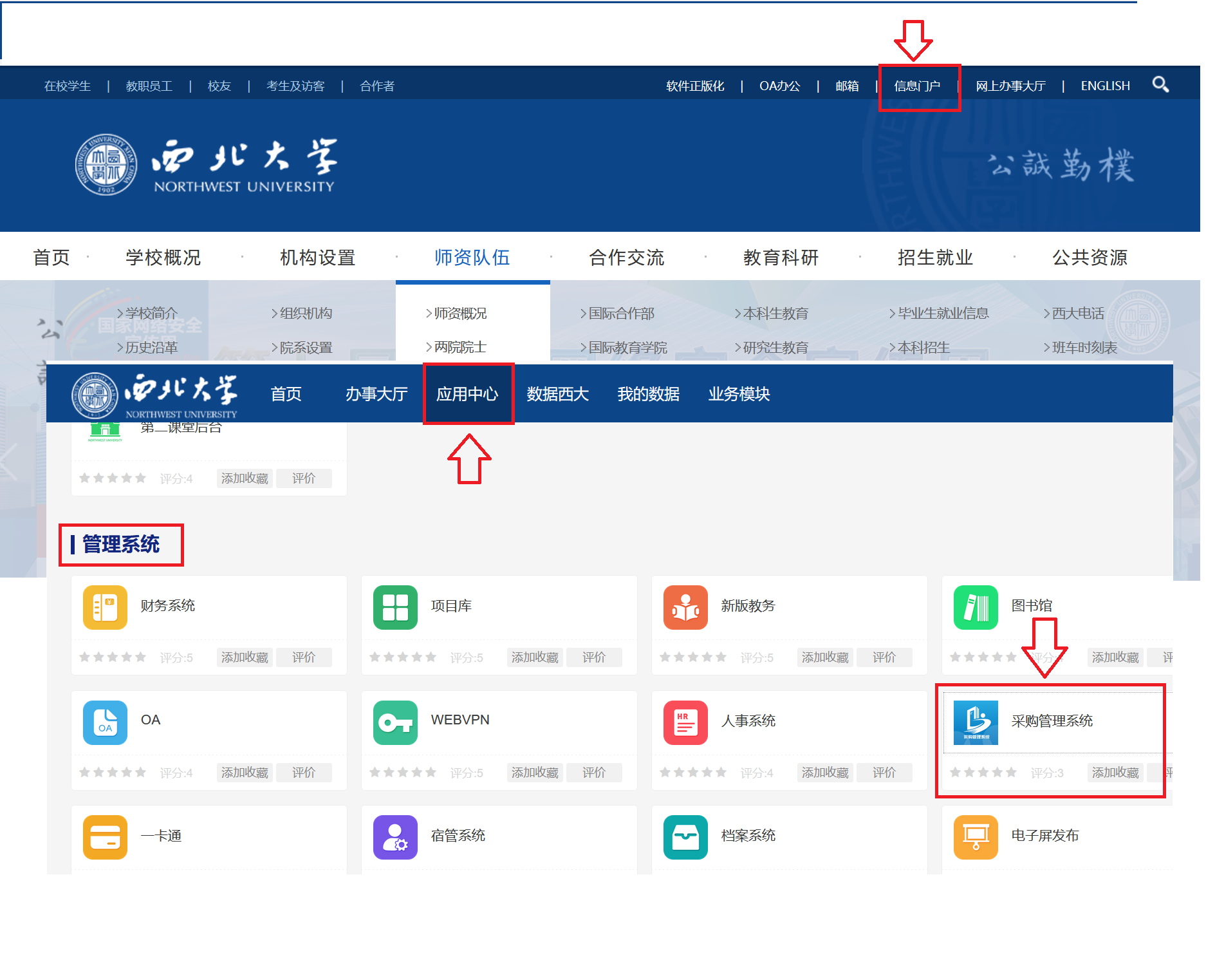 校内各单位可通过校园网首页右上角信息门户登陆后,选择应用中心-在管理系统栏目选择登录采购管理系统。或者通过乐投平台采购与招标办公室网站首页“采购管理”登录,请使用谷歌、火狐或者微软浏览器登陆。