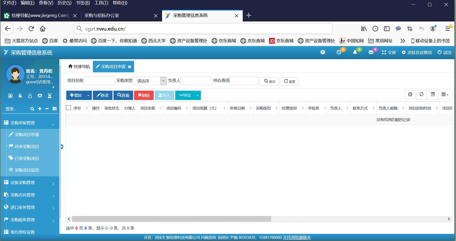 采购管理信息系统网站首页: