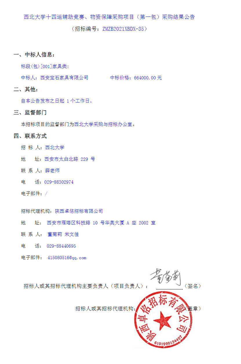 乐投平台十四运辅助竞赛、物资保障采购项目(第一包)中标结果公告