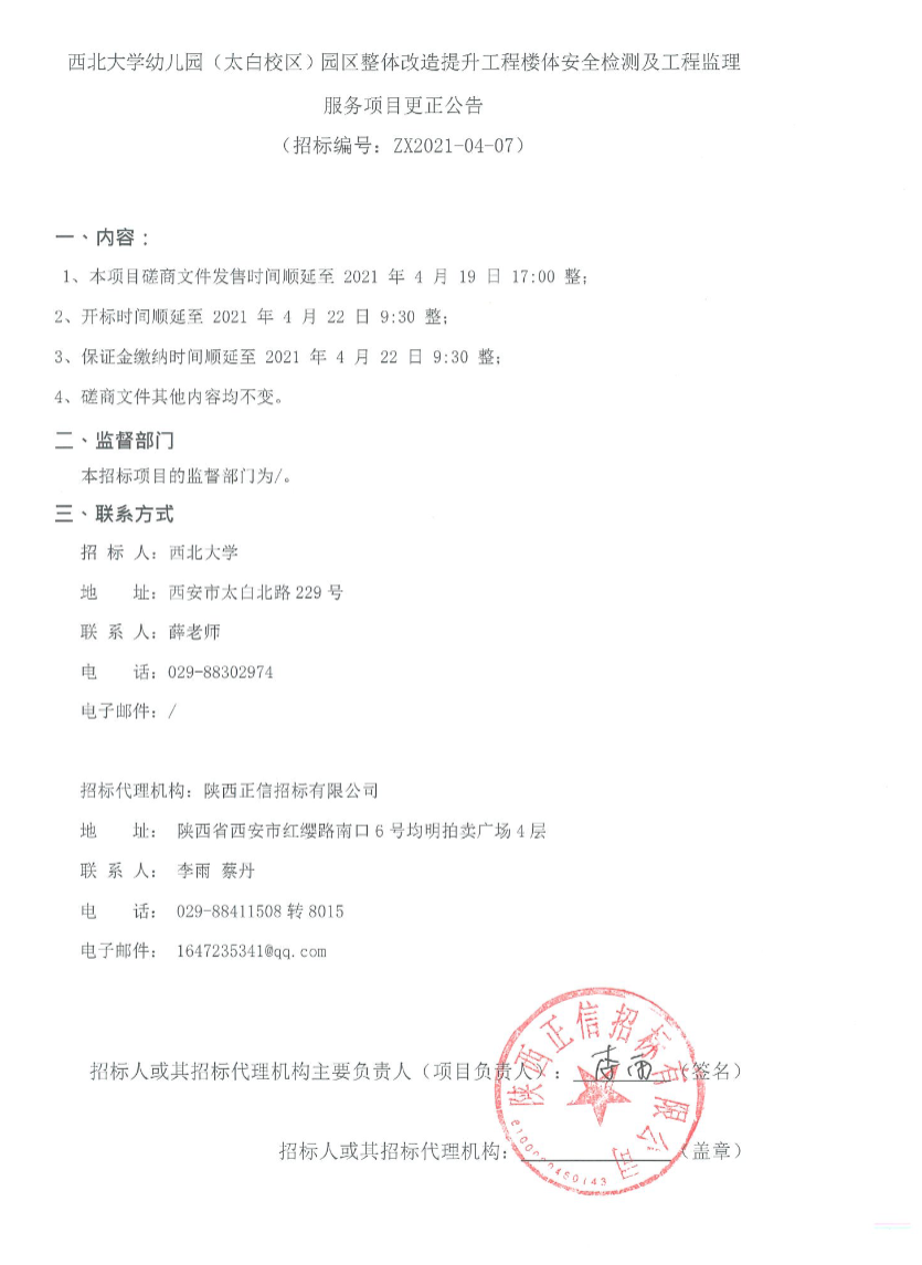 乐投平台幼儿园(太白校区)园区整体改造提升工程楼体安全检测及工程监理服务项目更正公告