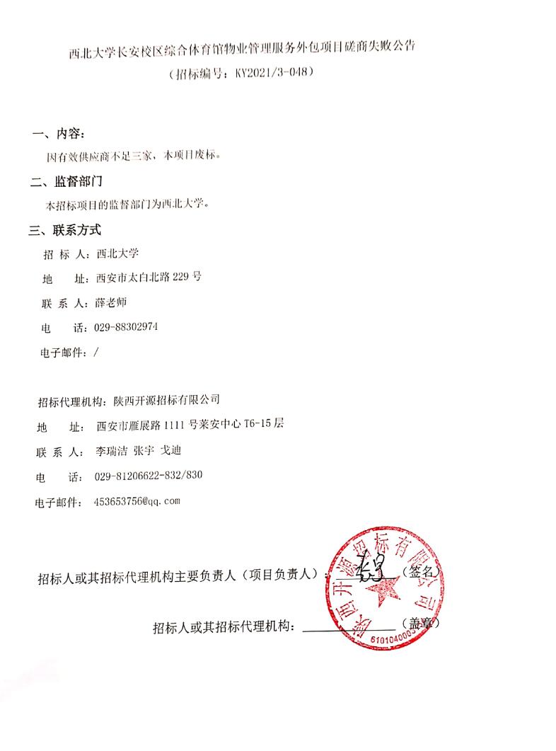 乐投平台长安校区综合体育馆物业管理服务外包项目磋商失败公告