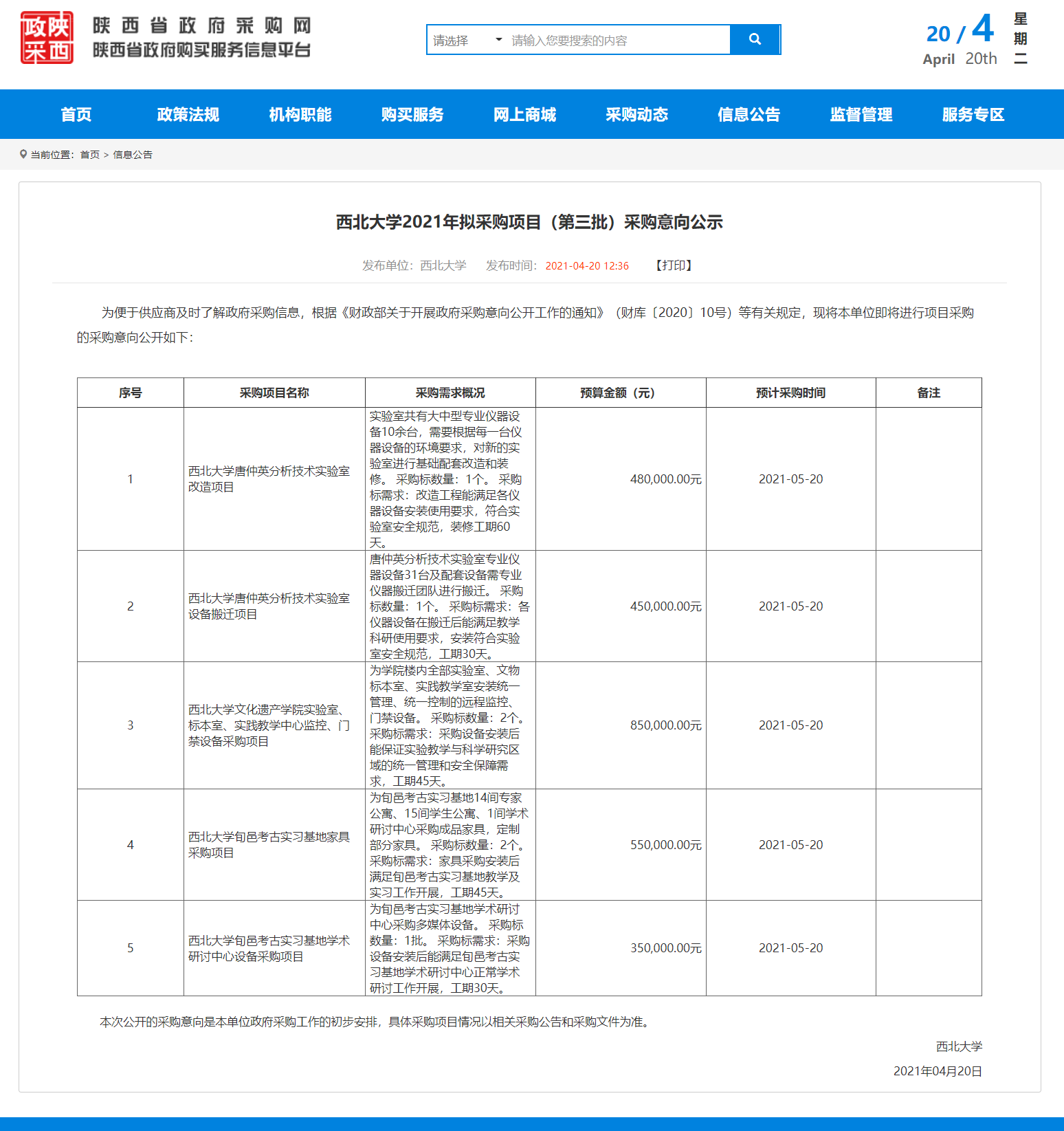 乐投平台2021年拟采购项目(第三批)采购意向公示