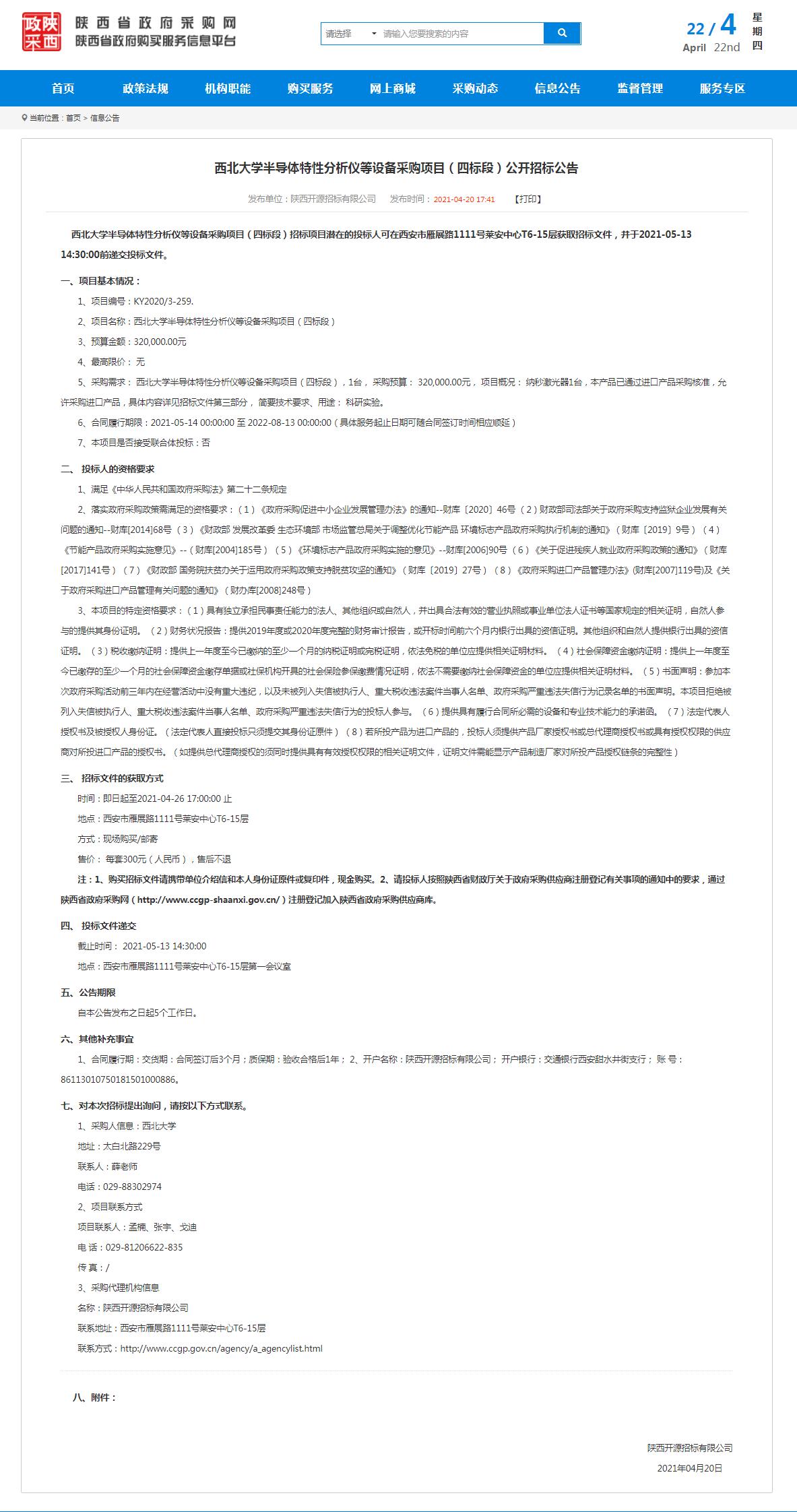 乐投平台半导体特性分析仪等设备采购项目(四标段)公开招标公告