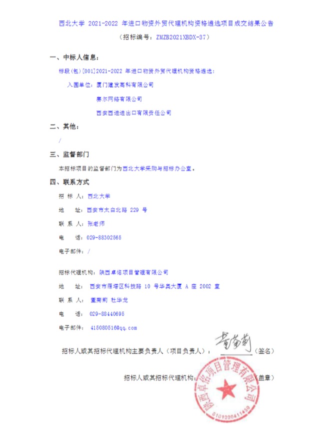 乐投平台2021-2022年进口物资外贸代理机构资格遴选项目成交结果公告