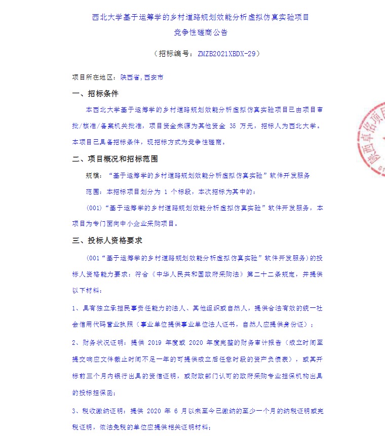 乐投平台基于运筹学的乡村道路规划效能分析虚拟仿真实验项目竞争性磋商公告
