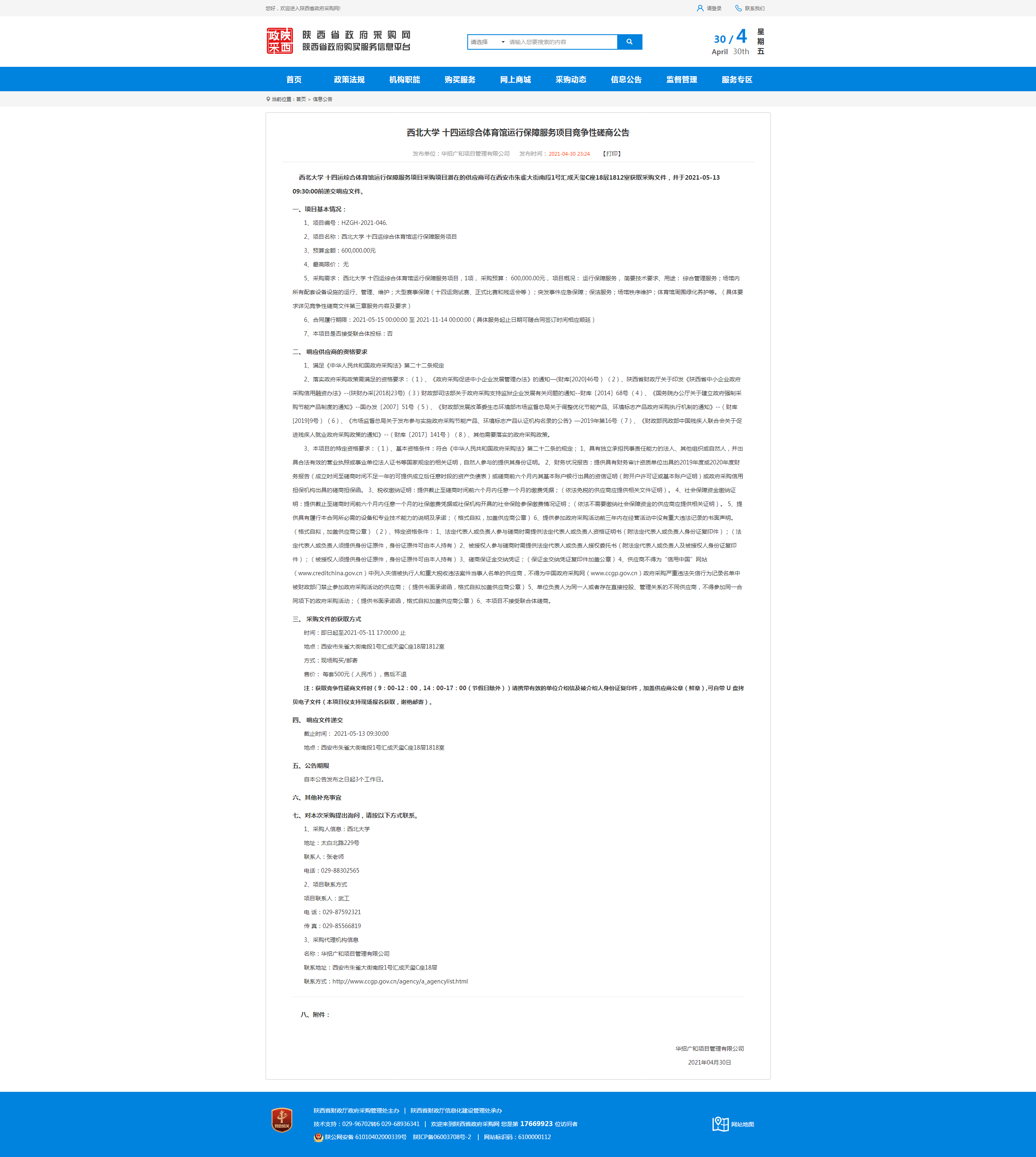 乐投平台十四运综合体育馆运行保障服务项目竞争性磋商公告
