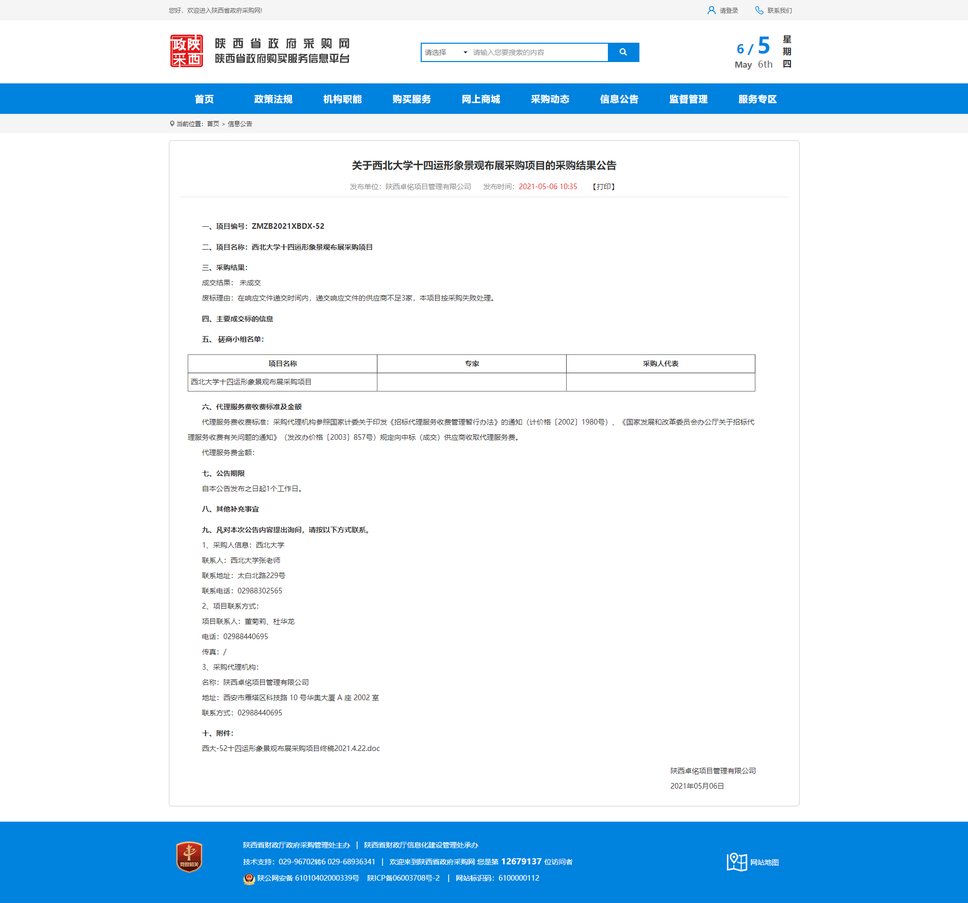 关于乐投平台十四运形象景观布展采购项目的采购结果公告