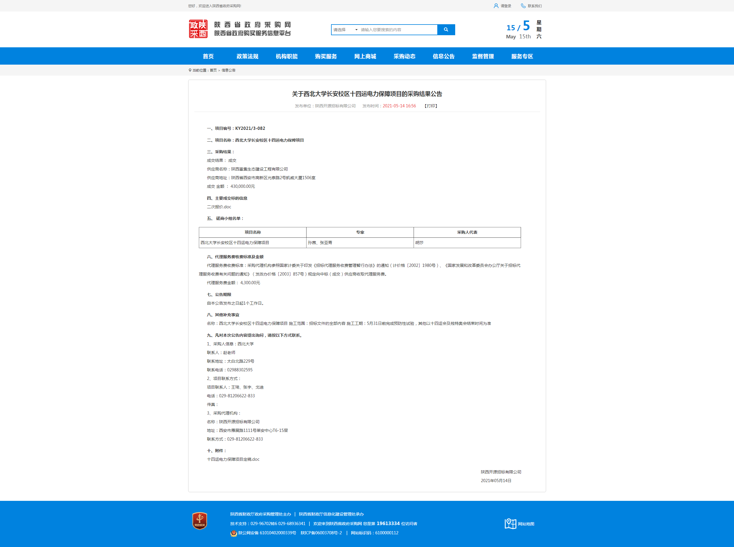 关于乐投平台长安校区十四运电力保障项目的采购结果公告