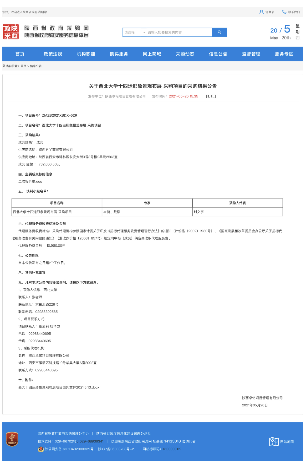 关于乐投平台十四运形象景观布展采购项目的采购结果公告