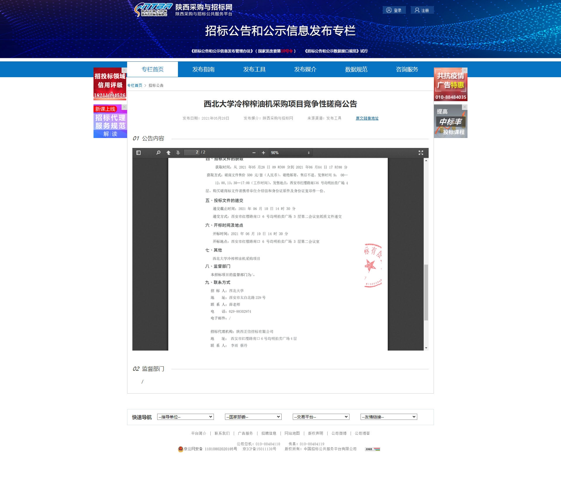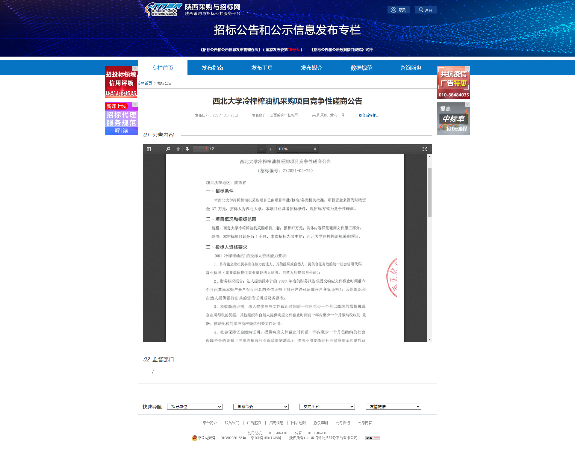 乐投平台冷榨榨油机采购项目竞争性磋商公告 作者: 编辑:薛利娟 时间:2021-05-28 原公告地址:http://bulletin.sntba.com/biddingBulletin/2021-05-28/302428.html
