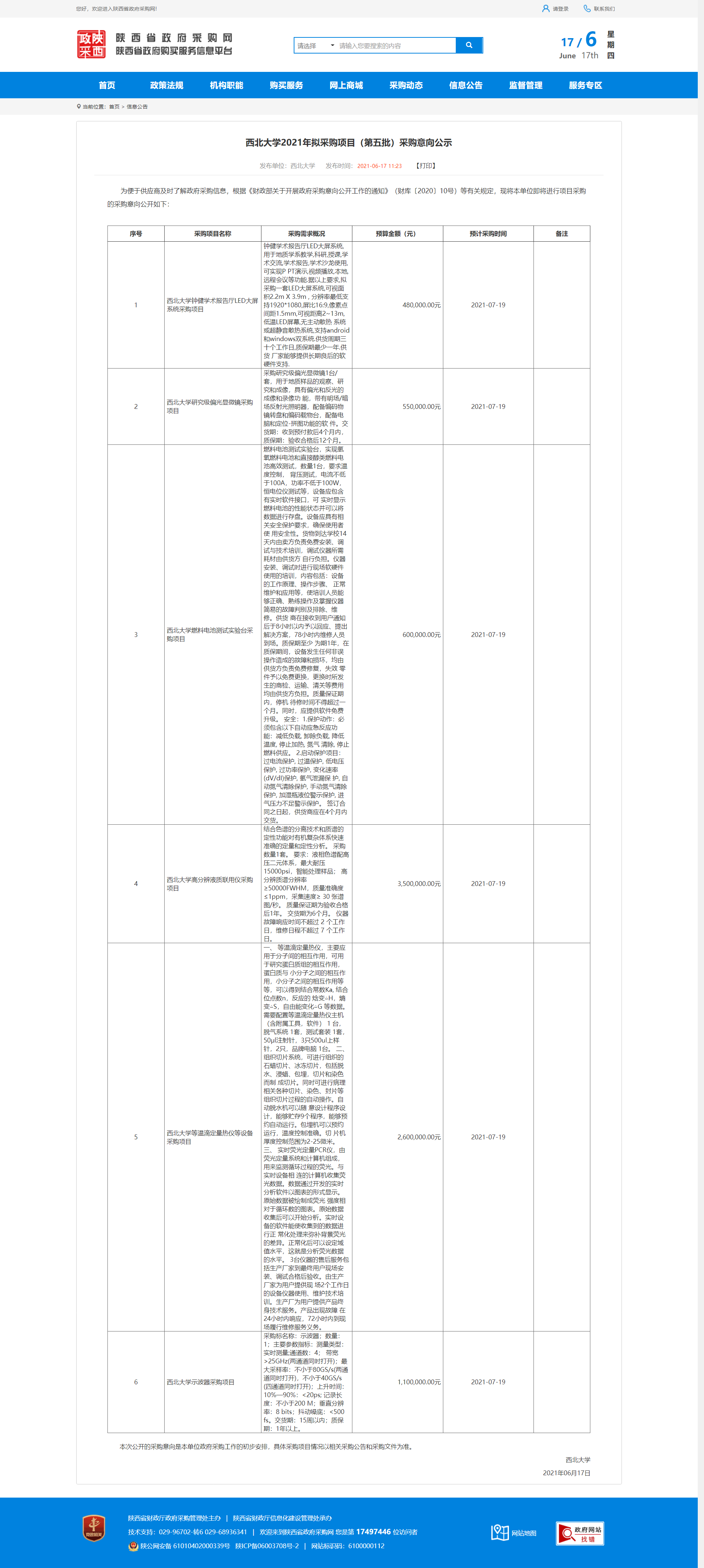 乐投平台2021年拟采购项目(第五批)采购意向公示 作者:采购与招标办公室 编辑: 时间:2021-06-17 原公告地址:http://www.ccgp-shaanxi.gov.cn/notice/noticeDetail.do?noticeguid=8a85be33791baa0f017a17ba426d2bfb