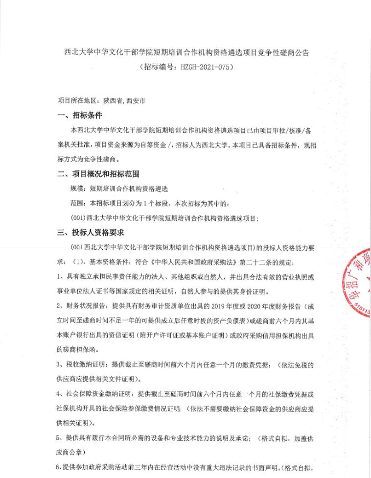 乐投平台中华文化干部学院短期培训合作机构资格遴选项目竞争性磋商公告