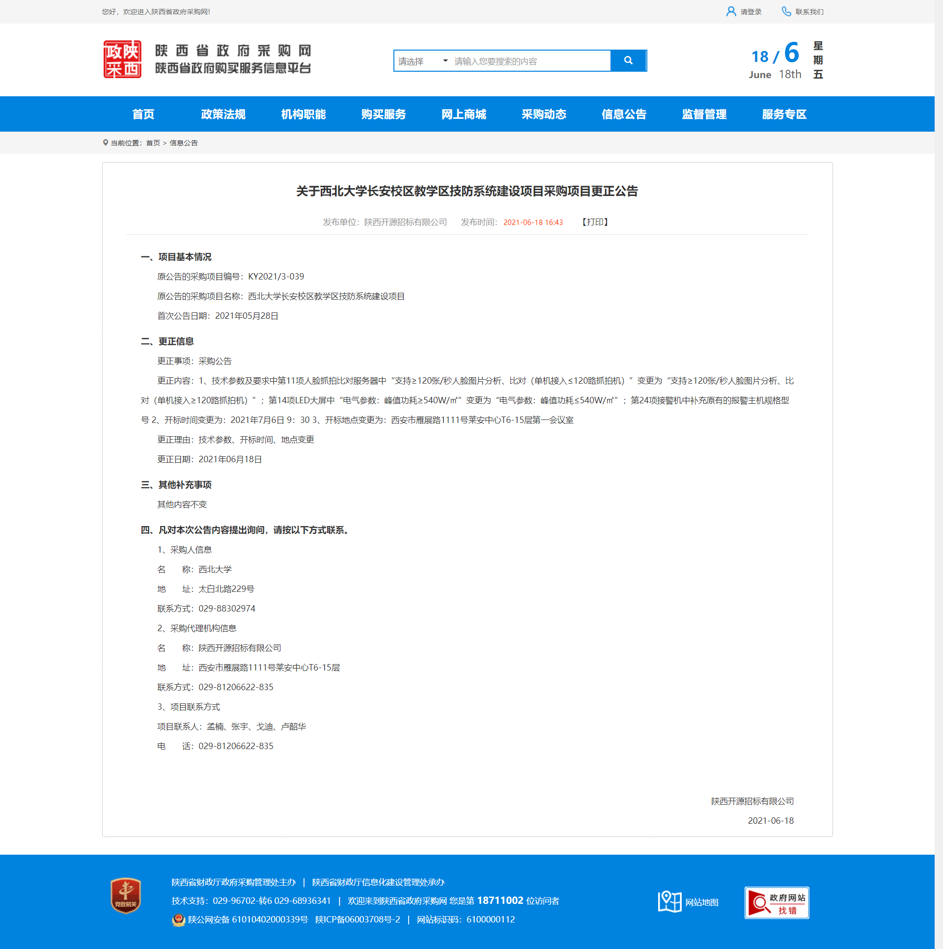 关于乐投平台长安校区教学区技防系统建设项目采购项目更正公告 作者: 编辑:采购与招标办公室 时间:2021-06-18 原公告地址:http://www.ccgp-shaanxi.gov.cn/notice/noticeDetail.do?noticeguid=8a85be3478a59799017a1e3c725d50d9