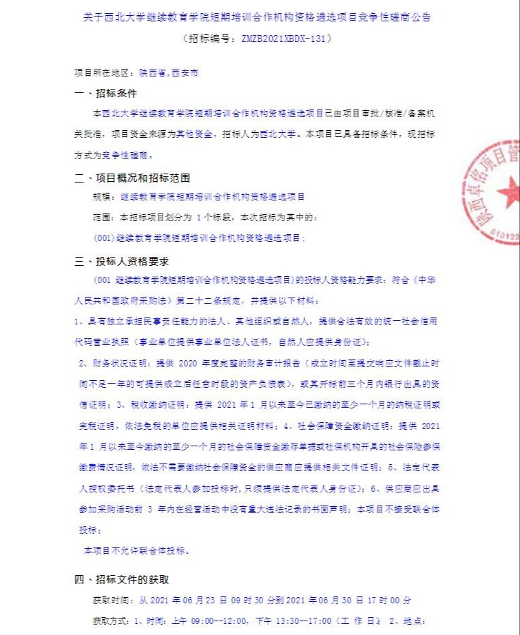 乐投平台继续教育学院短期培训合作机构资格遴选项目竞争性磋商公告