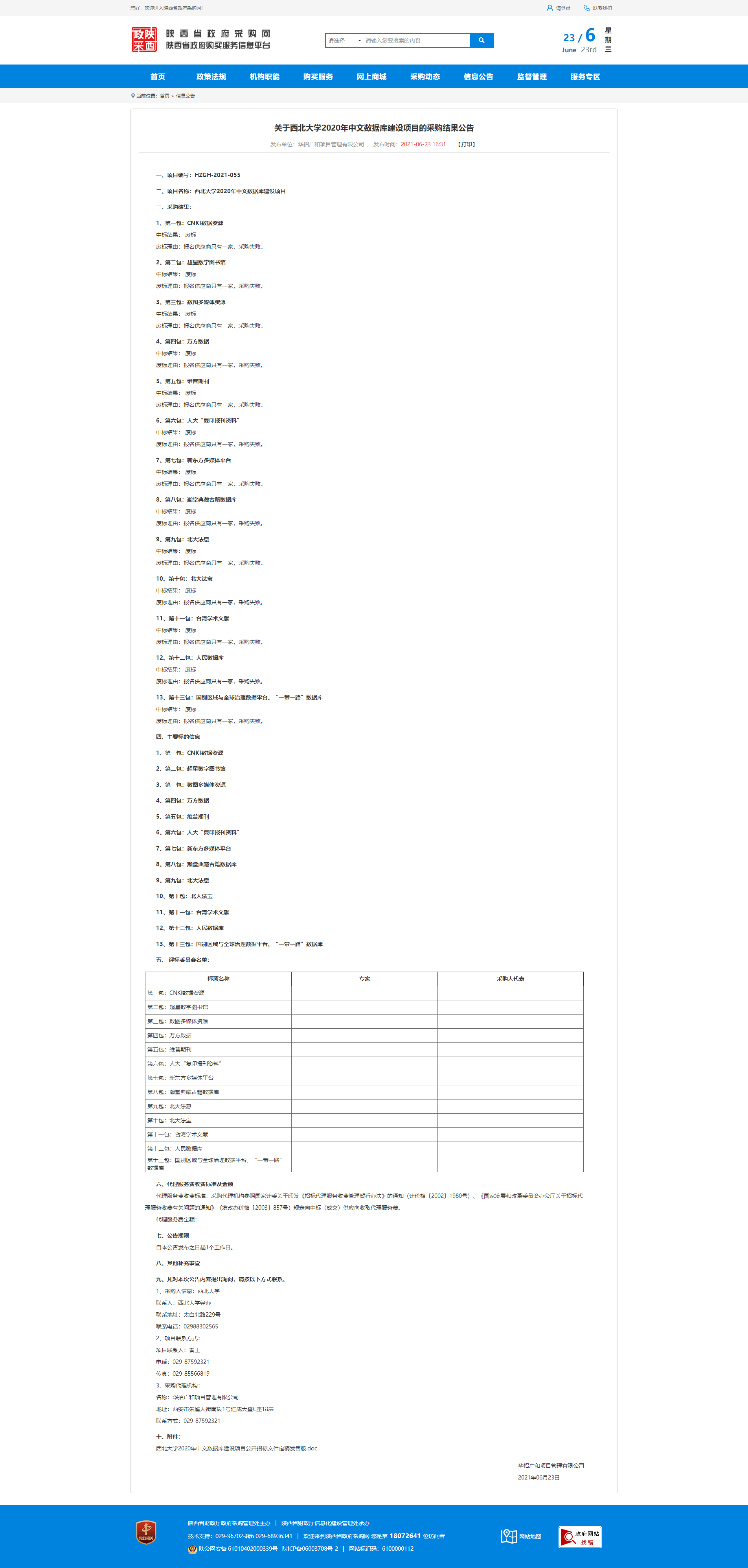 关于乐投平台2020年中文数据库建设项目的采购结果公告