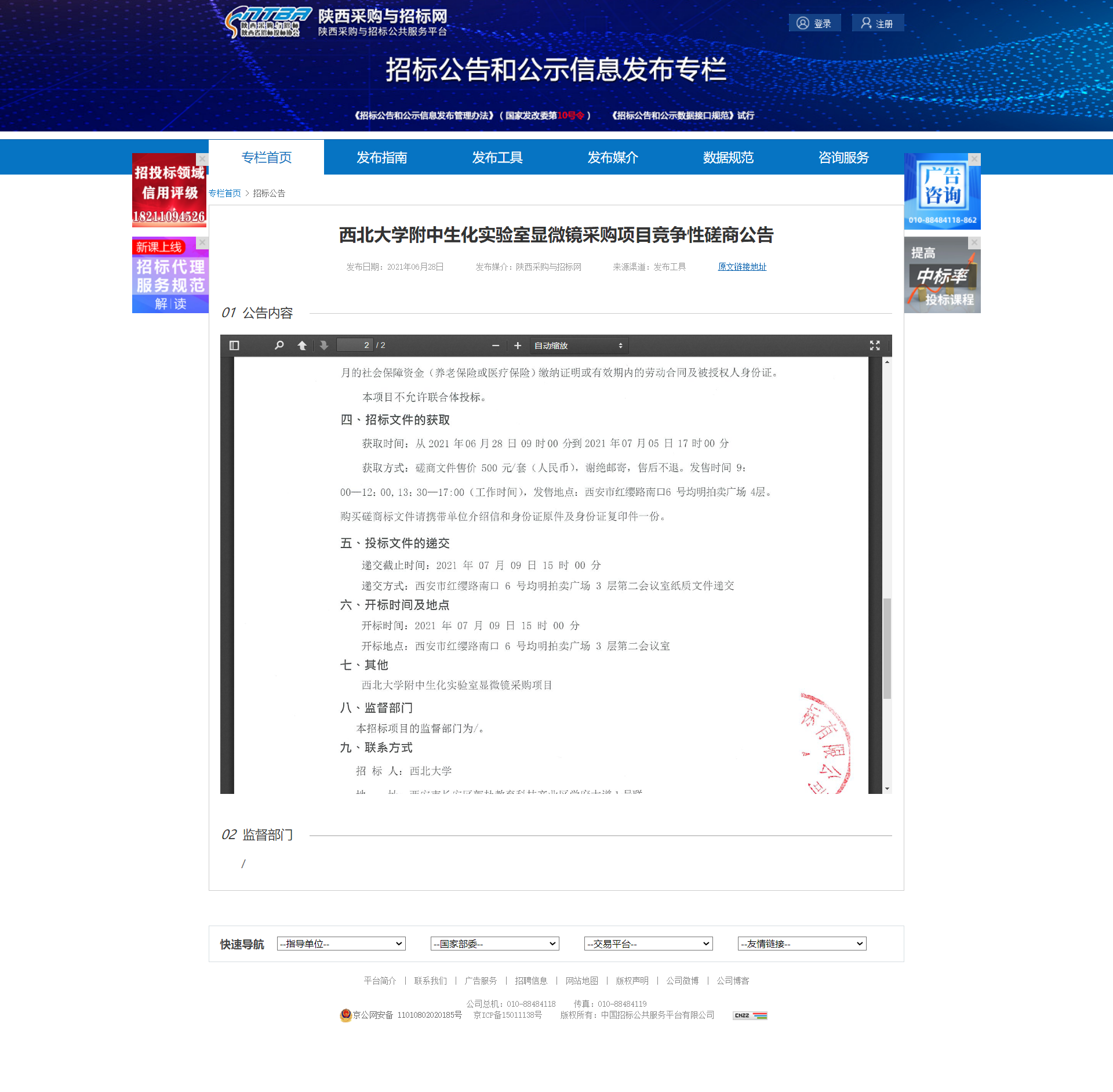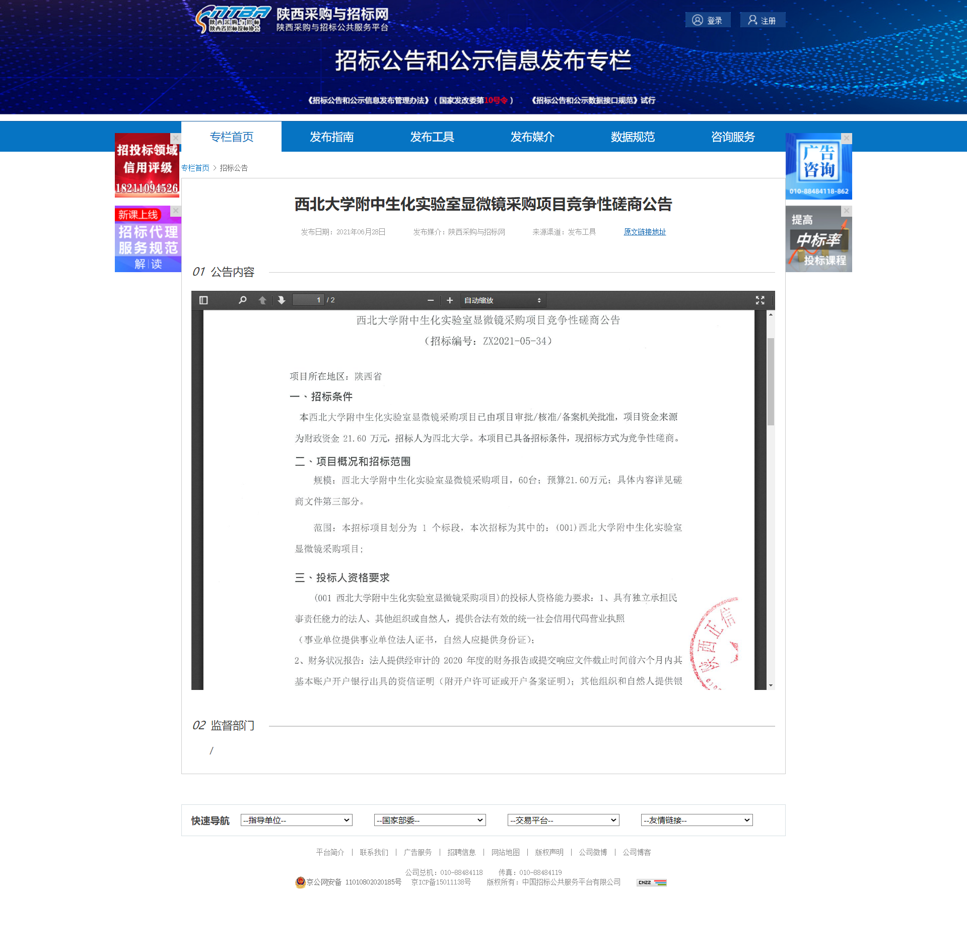 乐投平台附中生化实验室显微镜采购项目竞争性磋商公告 作者: 编辑:采购与招标办公室 时间:2021-06-28 原公告地址:http://bulletin.sntba.com/biddingBulletin/2021-06-28/312673.html