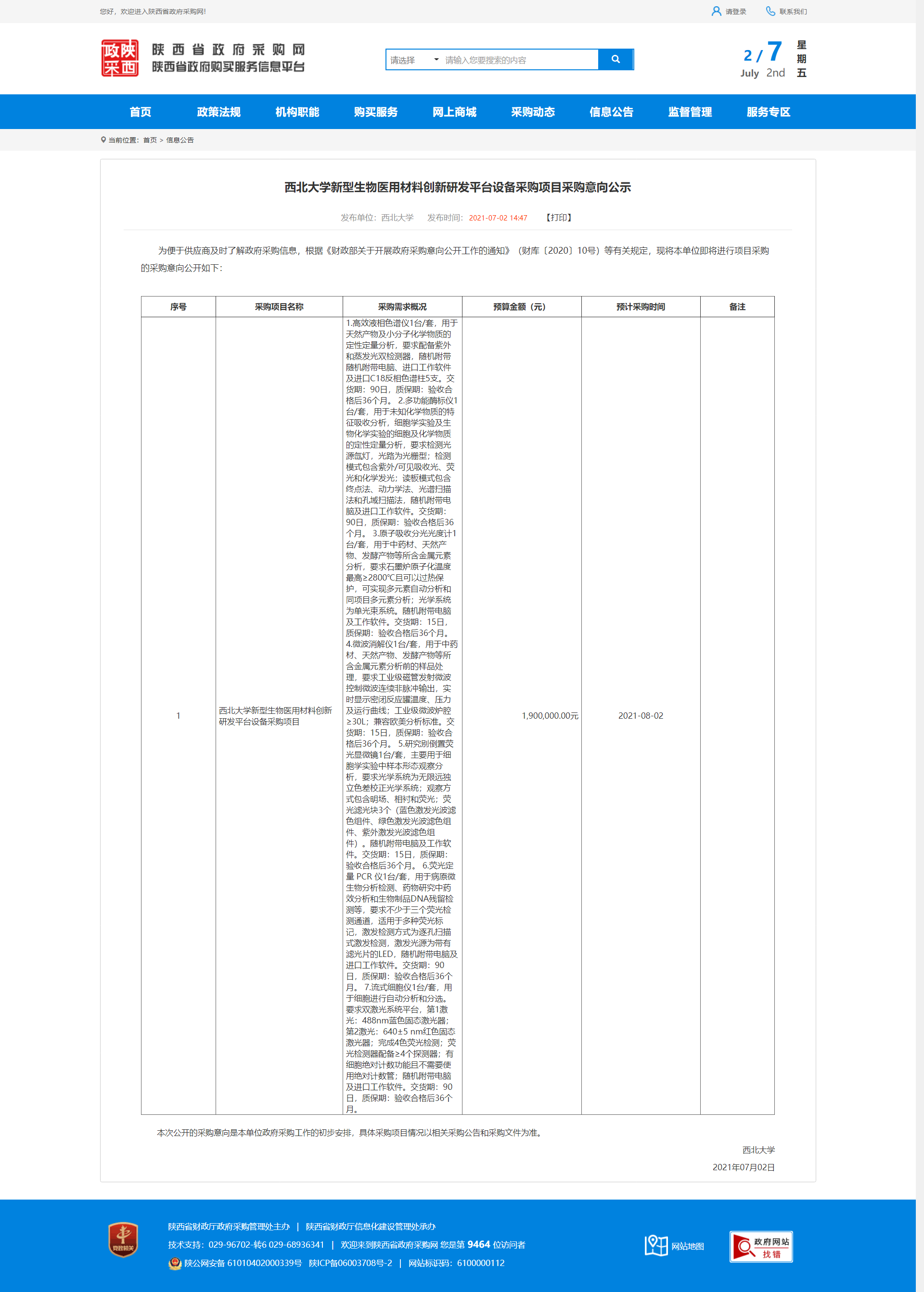 乐投平台新型生物医用材料创新研发平台设备采购项目采购意向公示 作者: 编辑:采购与招标办公室 时间:2021-07-02 原公告地址:http://www.ccgp-shaanxi.gov.cn/notice/noticeDetail.do?noticeguid=8a85be317a51dcbc017a65f4bbc71f16