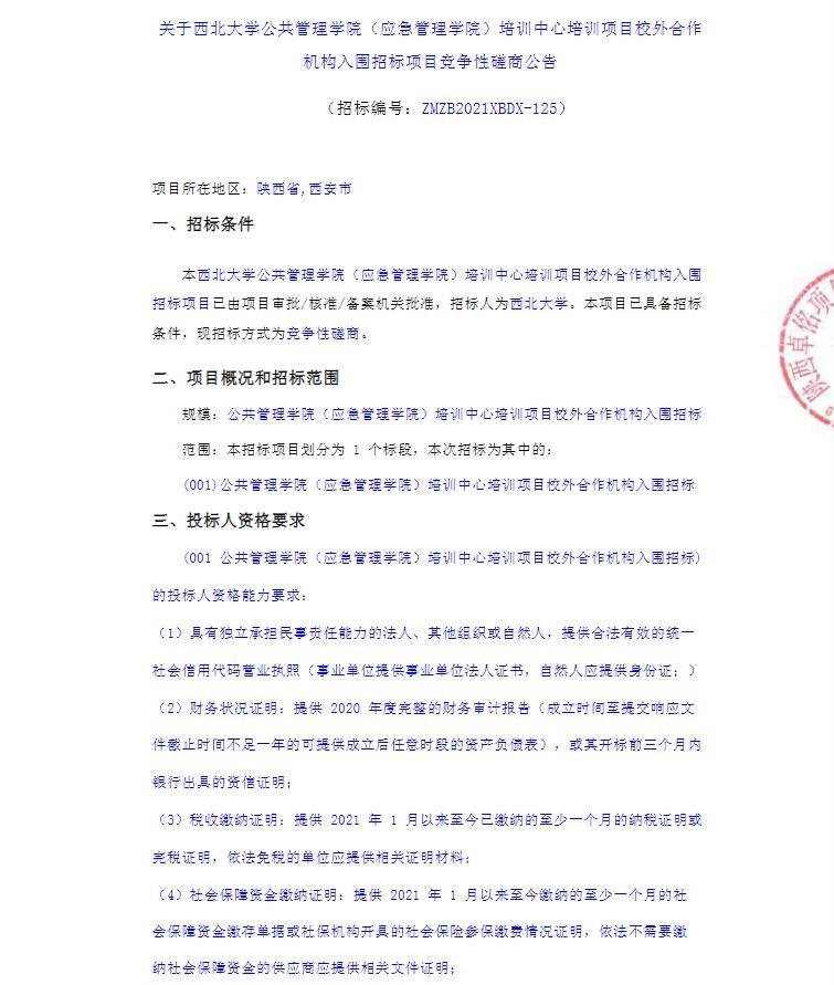 关于乐投平台公共管理学院(应急管理学院)培训中心培训项目校外合作机构入围招标项目竞争性磋商公告