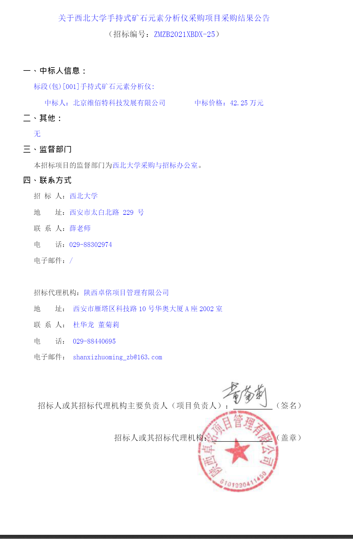 关于乐投平台手持式矿石元素分析仪采购项目采购结果公告