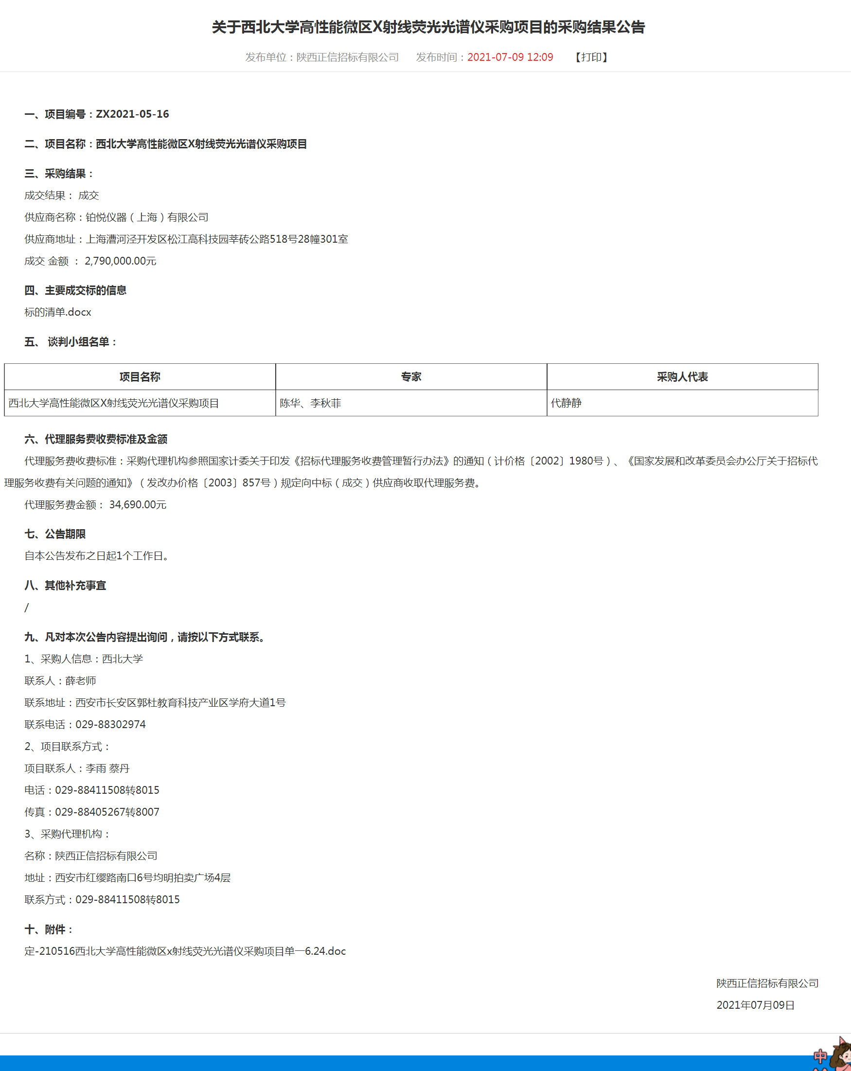 关于乐投平台高性能微区X射线荧光光谱仪采购项目的采购结果公告