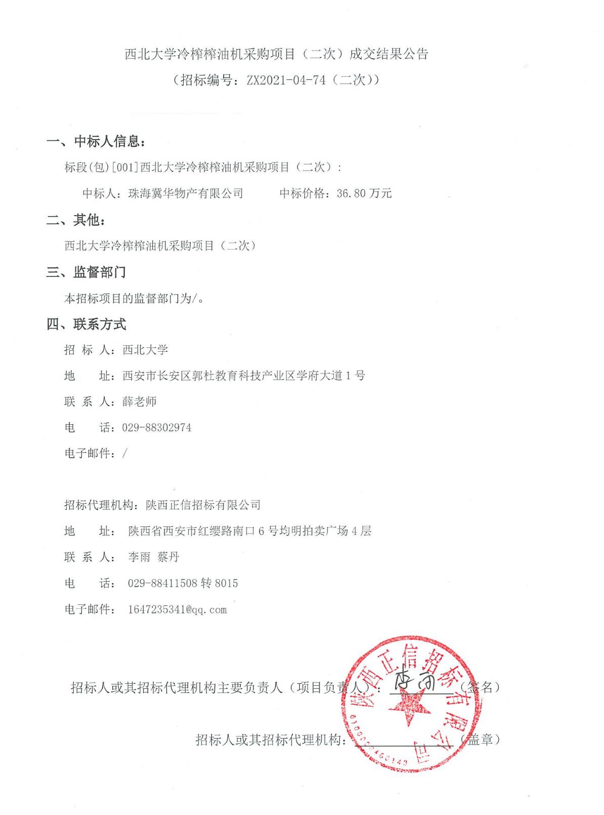 乐投平台冷榨榨油机采购项目(二次)成交结果公告