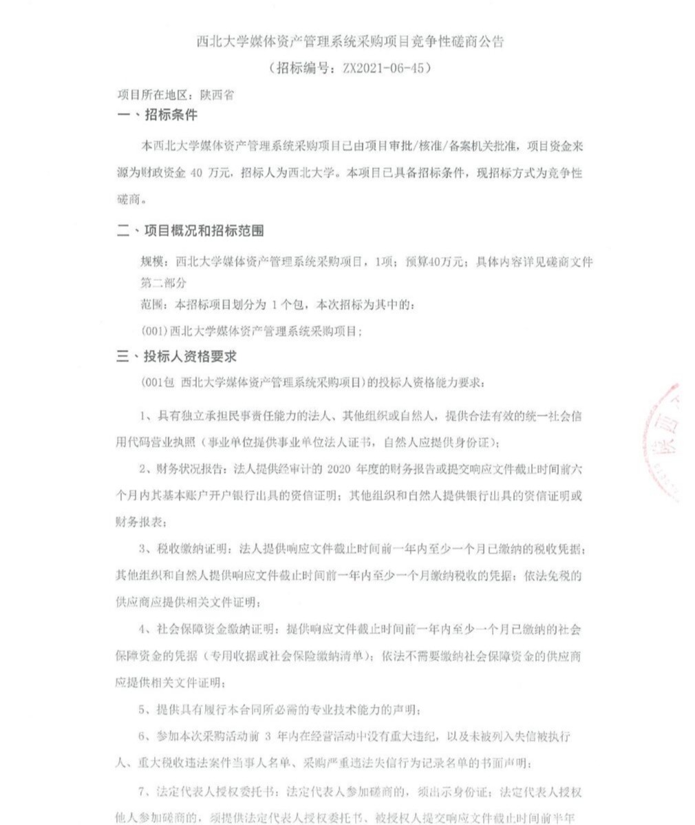乐投平台媒体资产管理系统采购项目竞争性磋商公告