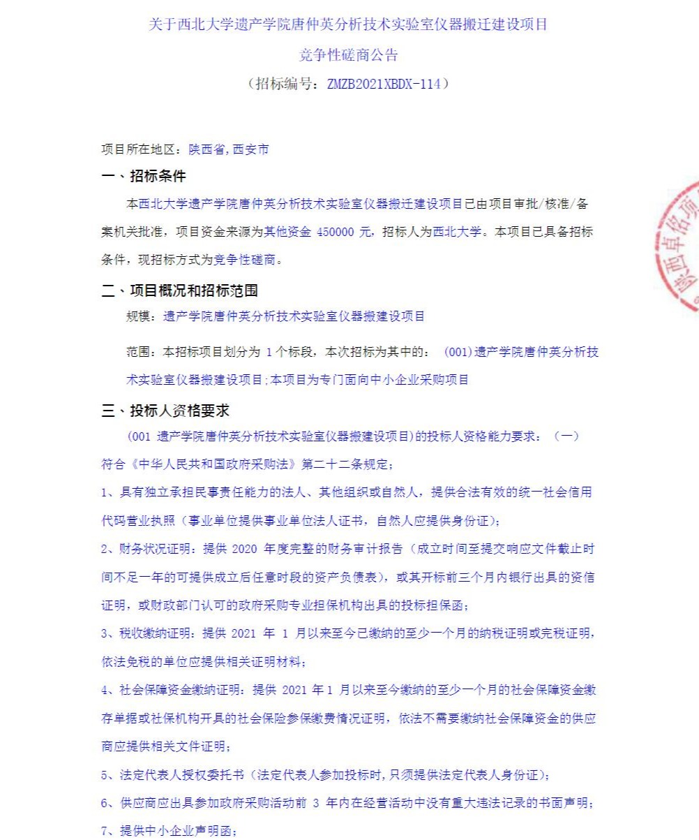 关于乐投平台遗产学院唐仲英分析技术实验室仪器搬迁建设项目竞争性磋商公告