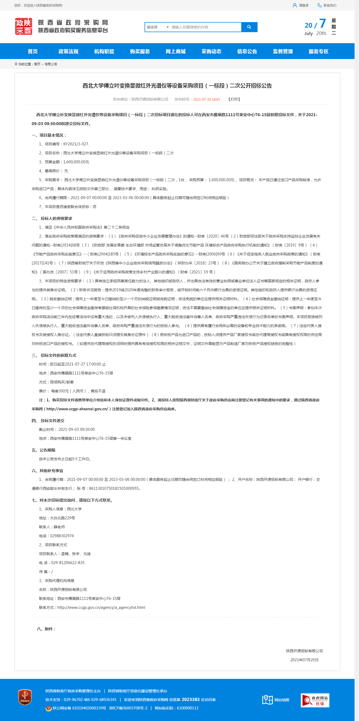 乐投平台傅立叶变换显微红外光谱仪等设备采购项目(一标段)二次公开招标公告 作者: 编辑:采购与招标办公室 时间:2021-07-20 原公告地址:http://www.ccgp-shaanxi.gov.cn/notice/noticeDetail.do?noticeguid=8a85be337a79620e017ac245c8027b46