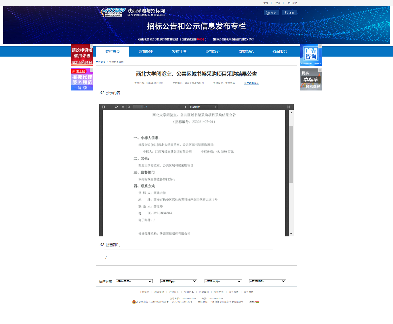乐投平台阅览室、公共区域书架采购项目采购结果公告 作者: 编辑:采购与招标办公室 时间:2021-07-26 原公告地址:http://bulletin.sntba.com/resultBulletin/2021-07-26/323301.html