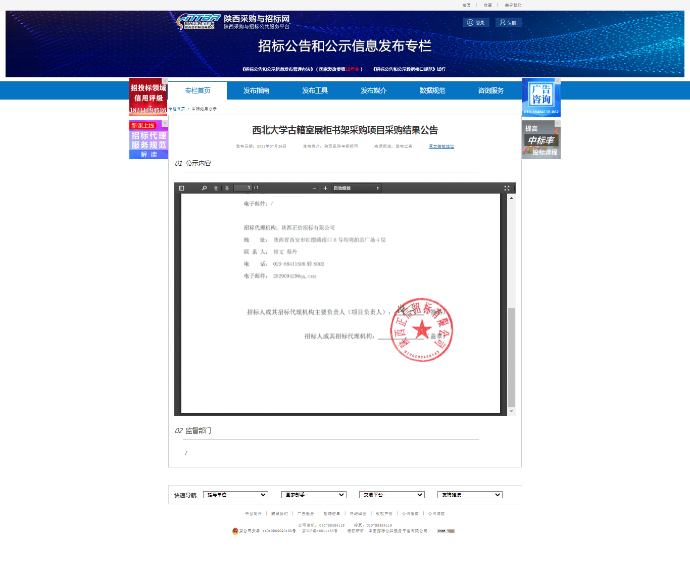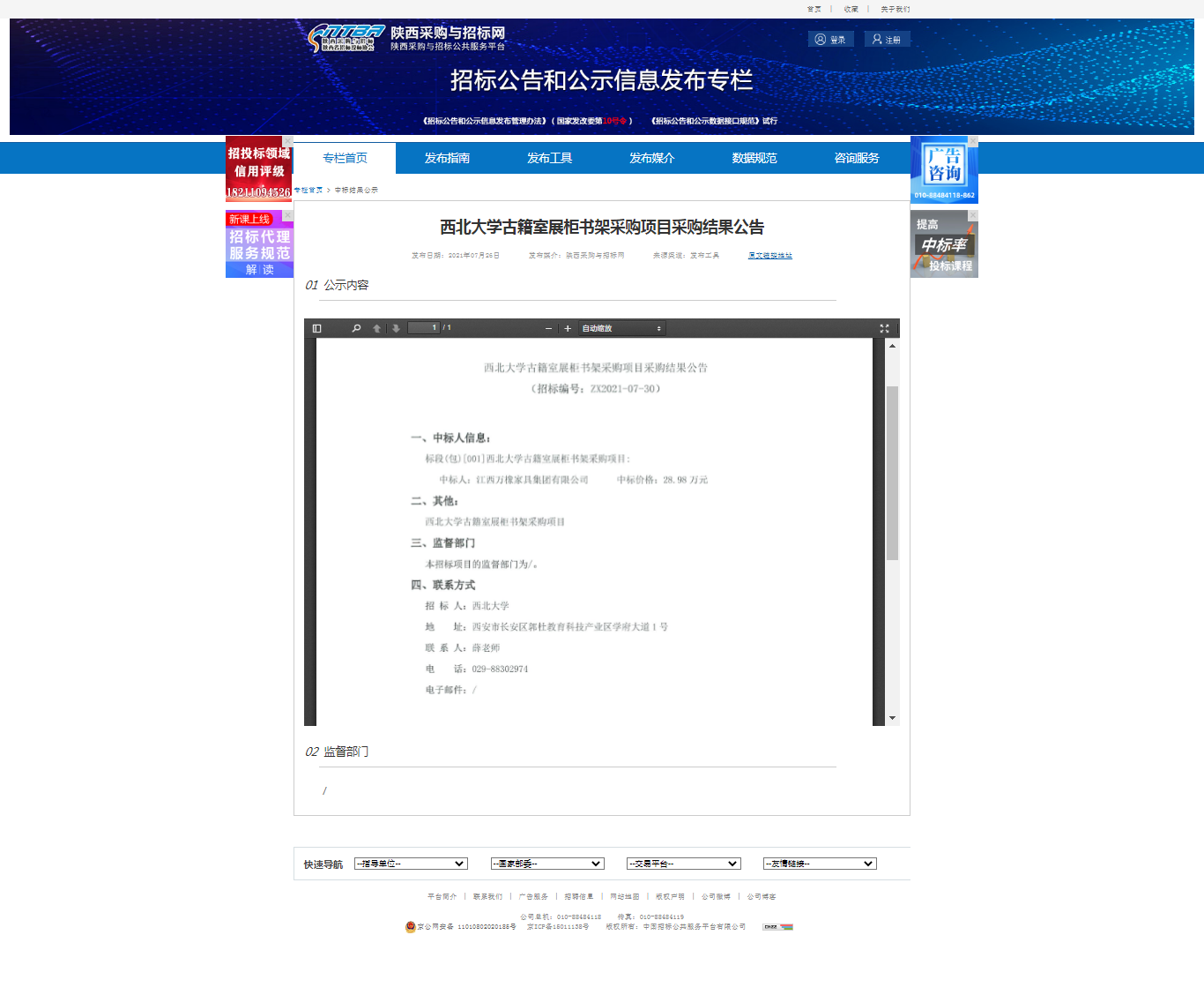 乐投平台古籍室展柜书架采购项目采购结果公告 作者: 编辑:采购与招标办公实验室 时间:2021-07-26 原公告地址:http://bulletin.sntba.com/resultBulletin/2021-07-26/323299.html