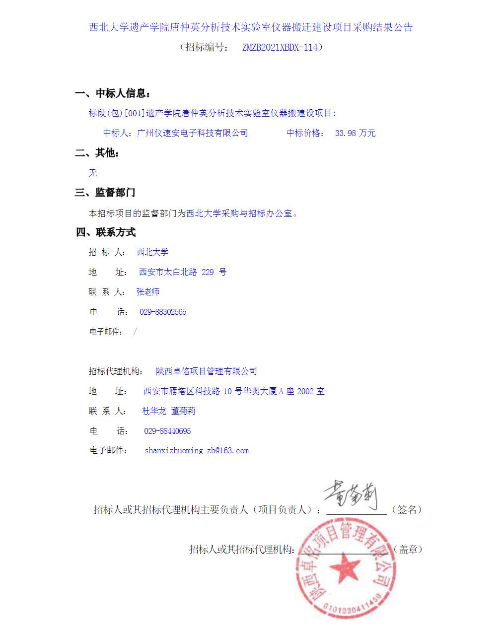 关于乐投平台遗产学院唐仲英分析技术实验室仪器搬迁建设项目采购结果公告