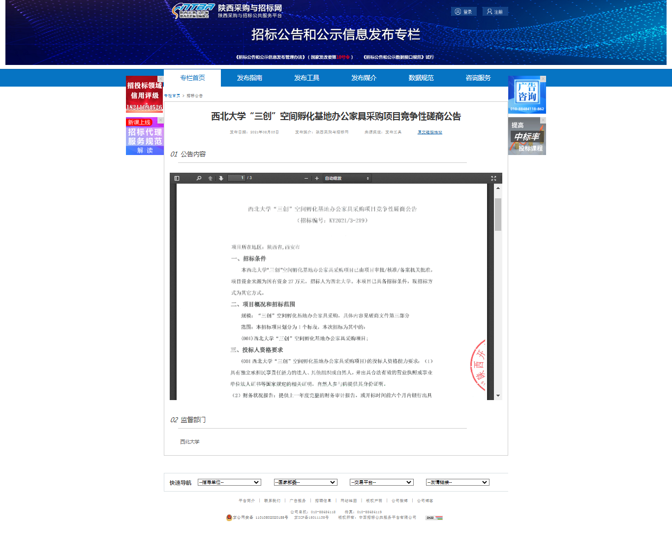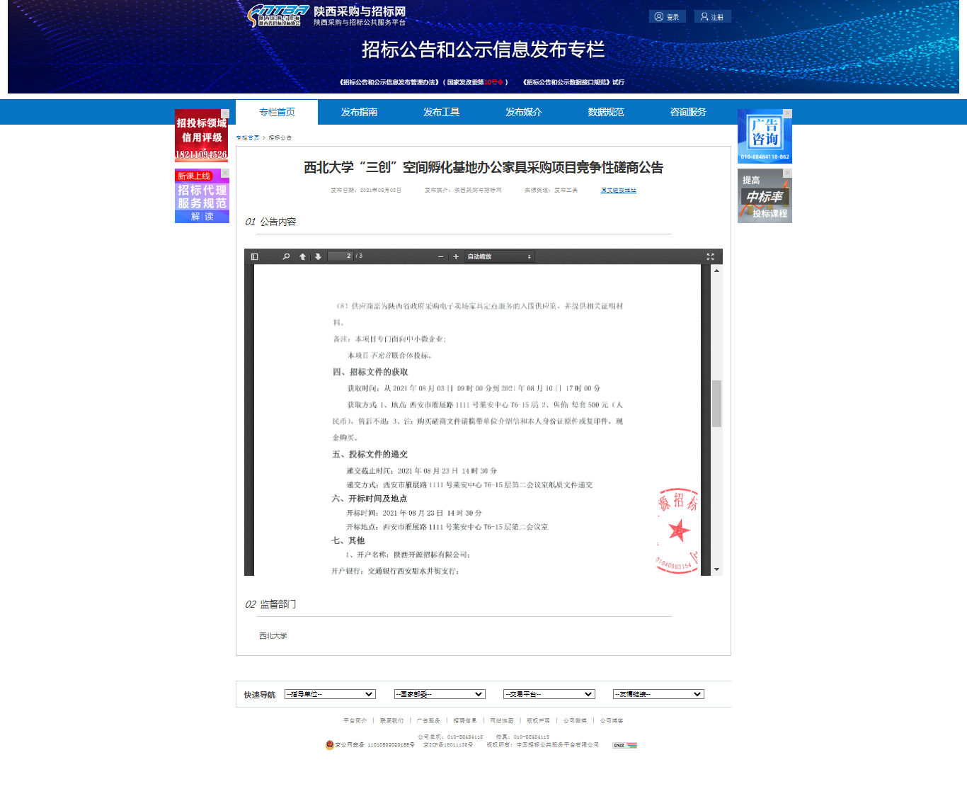 乐投平台“三创”空间孵化基地办公家具采购项目竞争性磋商公告 作者: 编辑:采购与招标办公室 时间:2021-08-04 原公告地址:http://bulletin.sntba.com/biddingBulletin/2021-08-03/326513.html