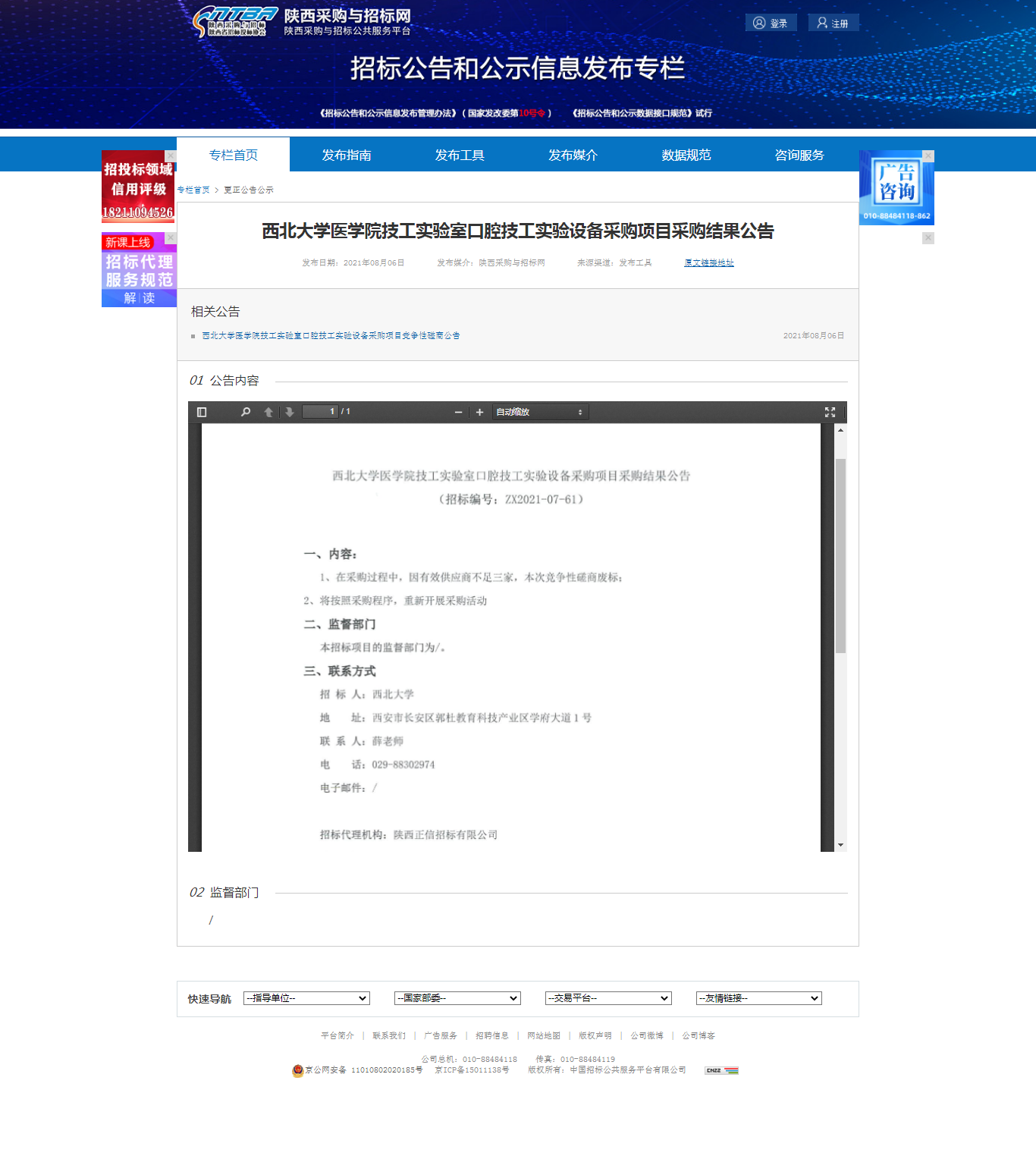 乐投平台医学院技工实验室口腔技工实验设备采购项目采购结果公告 作者: 编辑:采购与招标办公室 时间:2021-08-06 原公告地址:http://bulletin.sntba.com/changeBulletin/2021-08-06/328182.html