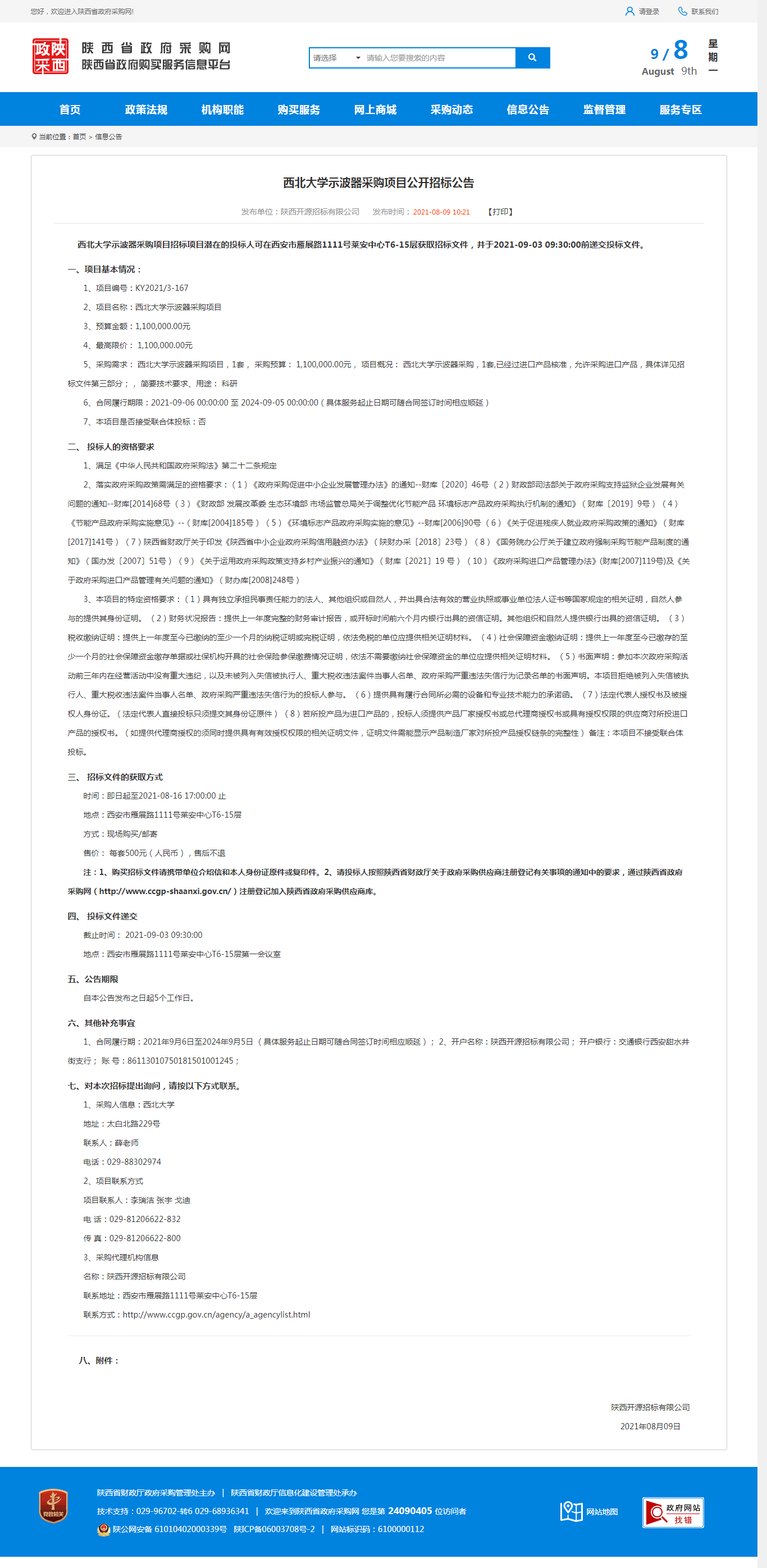 乐投平台示波器采购项目公开招标公告 作者: 编辑:采购与招标办公室 时间:2021-08-09 原公告地址:http://www.ccgp-shaanxi.gov.cn/notice/noticeDetail.do?noticeguid=8a85be347b04610d017b28a3aa0f0939