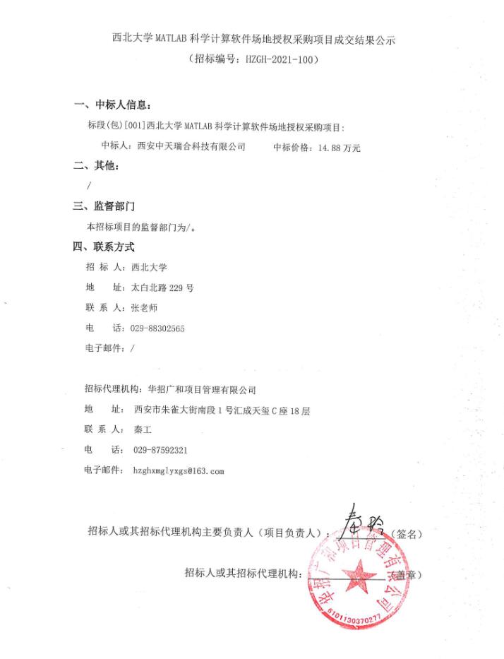 乐投平台MATLAB科学计算软件场地授权采购项目成交结果公示