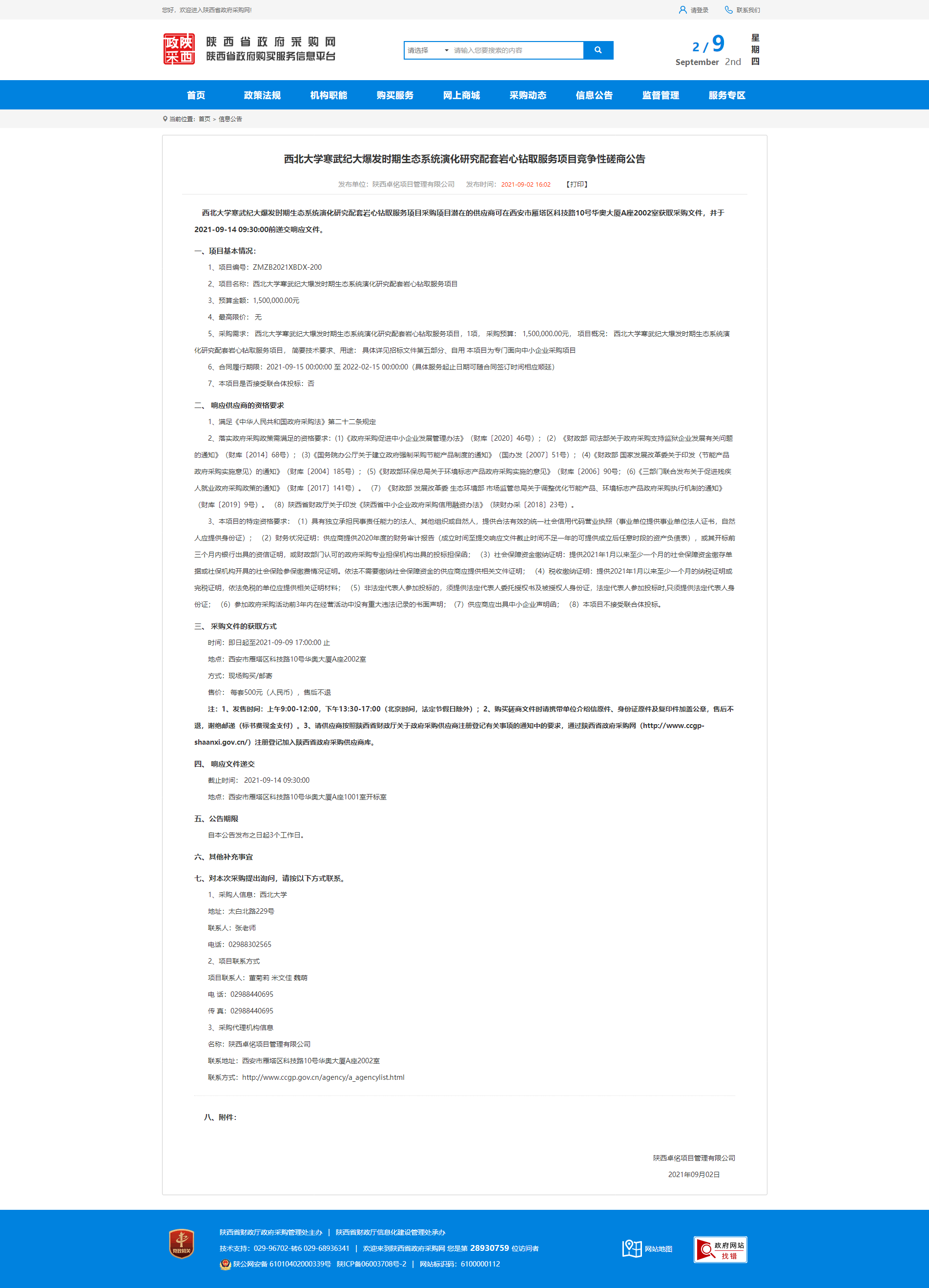 乐投平台寒武纪大爆发时期生态系统演化研究配套岩心钻取服务项目竞争性磋商公告